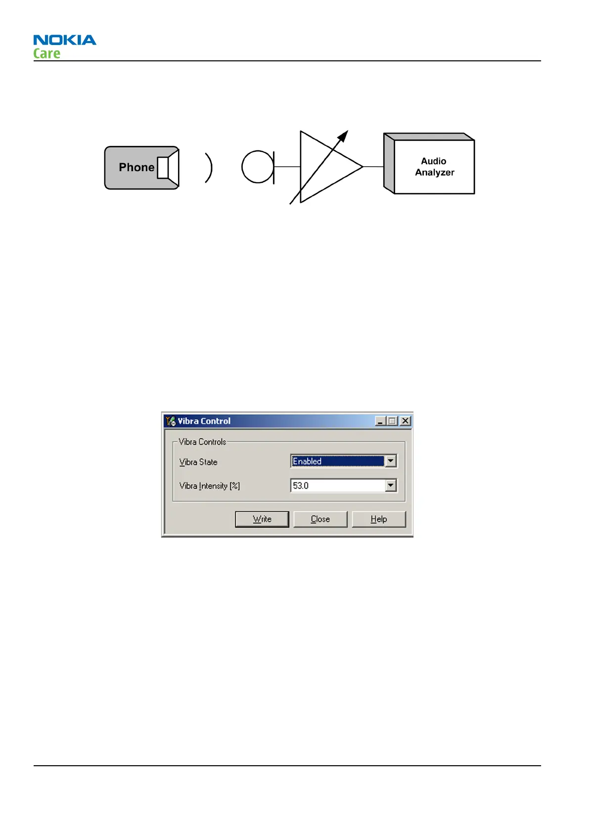 Figure 27 Checking vibra function by using vibra control