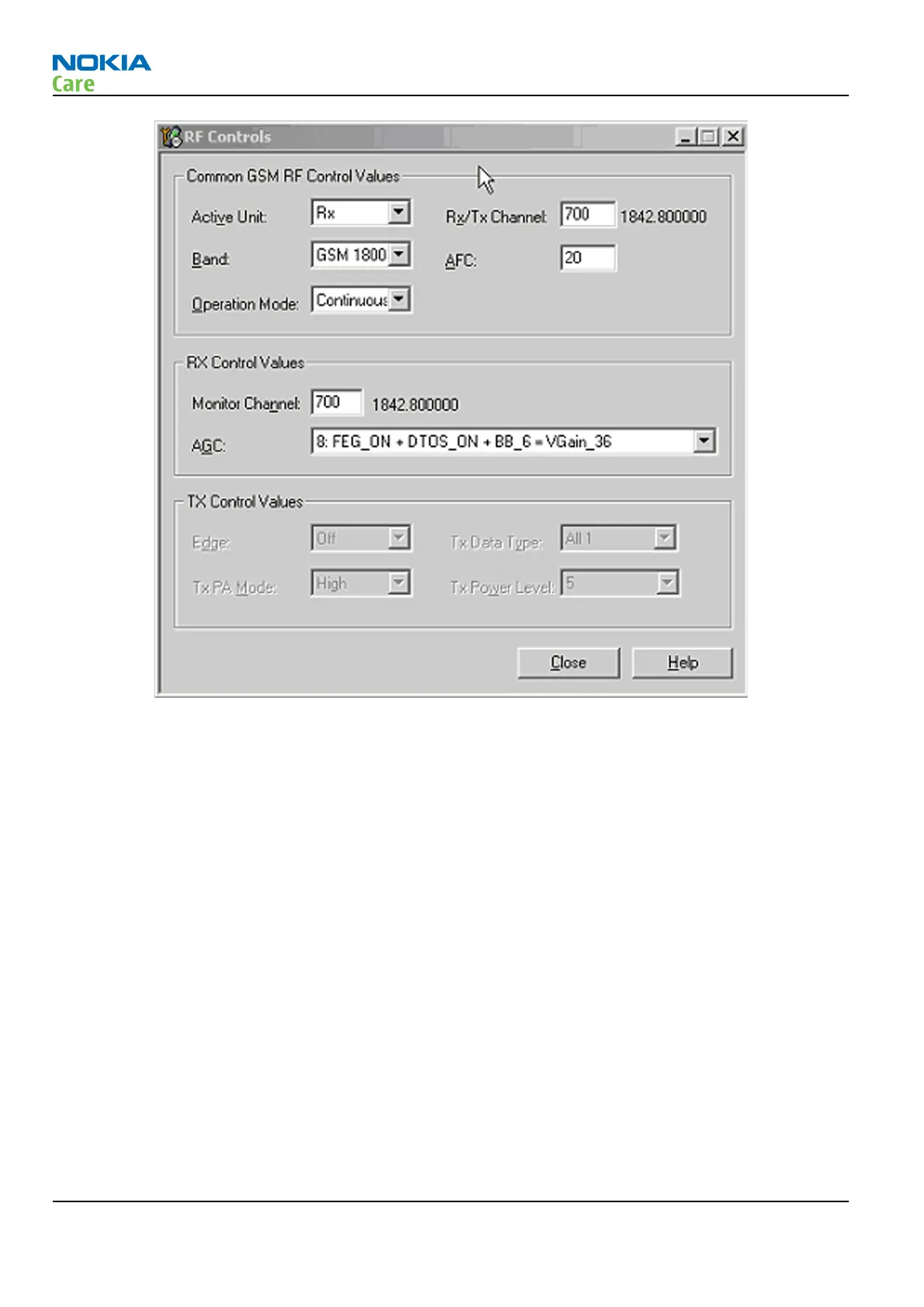 Figure 40 GSM1800 RF controls window