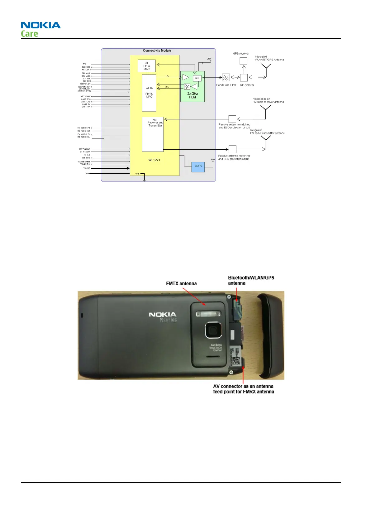 shared Bluetooth/WLAN/GPS antenna is used. The FM receiver RF signal is routed through a product specific