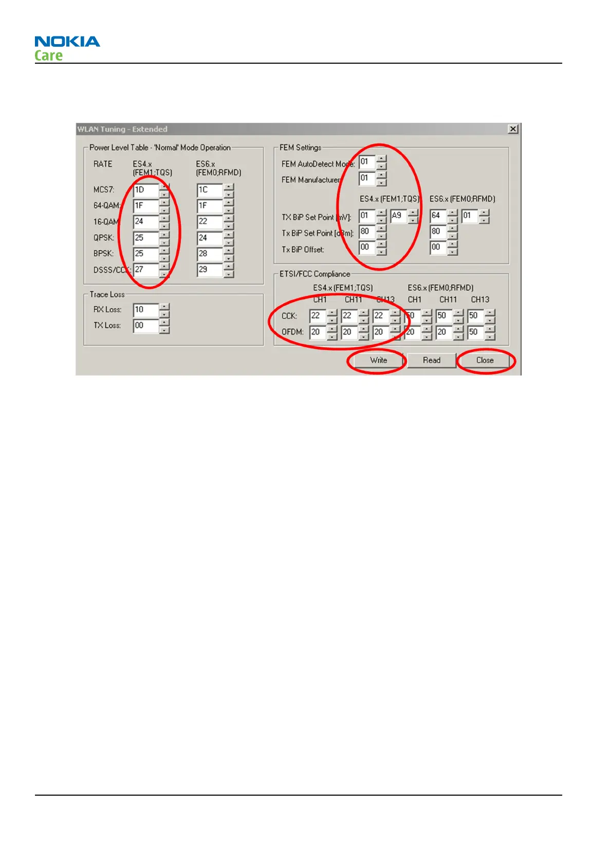 internally. RF cable and adapter losses do not need to be taken into account while WLAN TX tuning