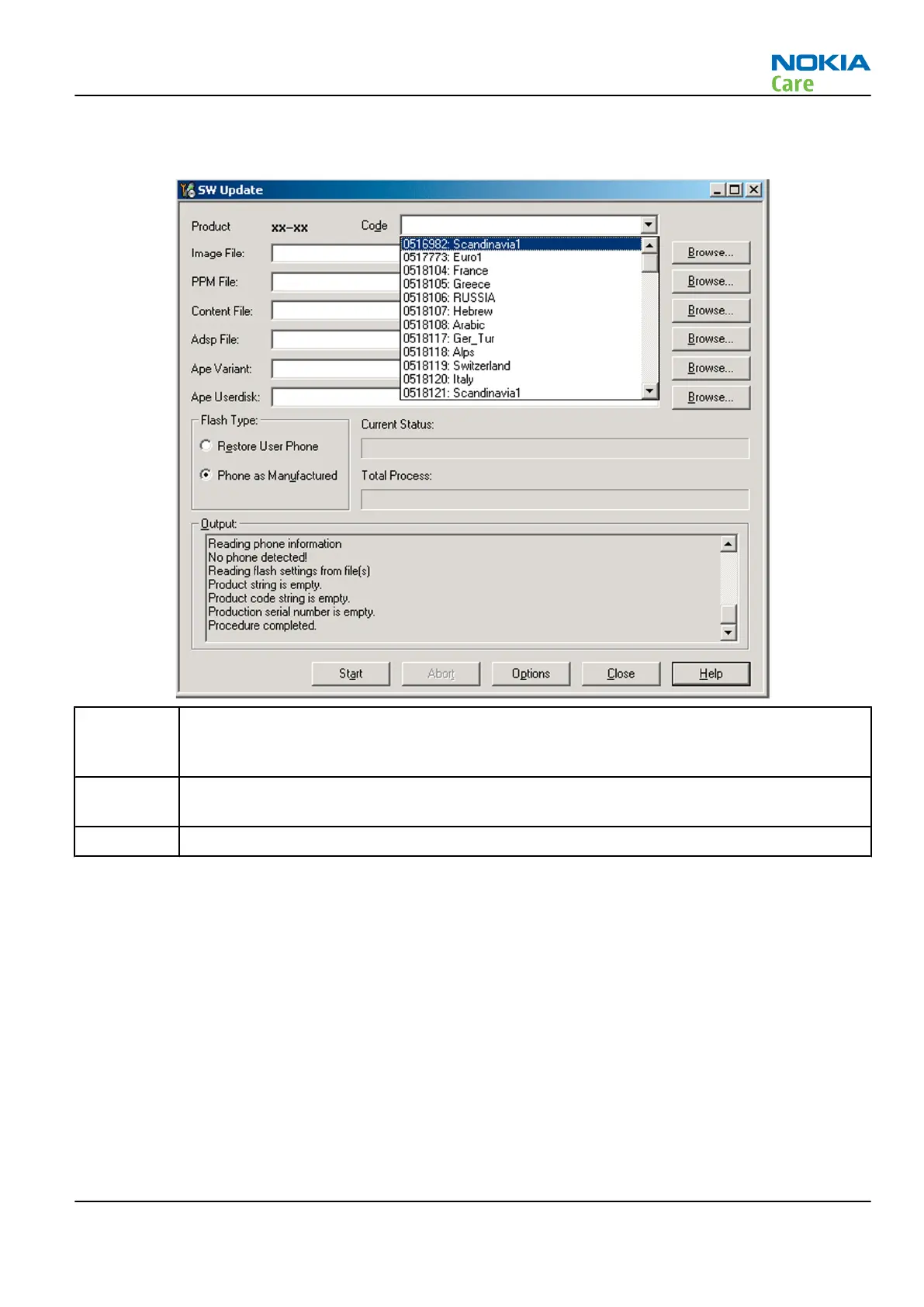 correct product code (can be seen in the phone type label) from the dropdown list.