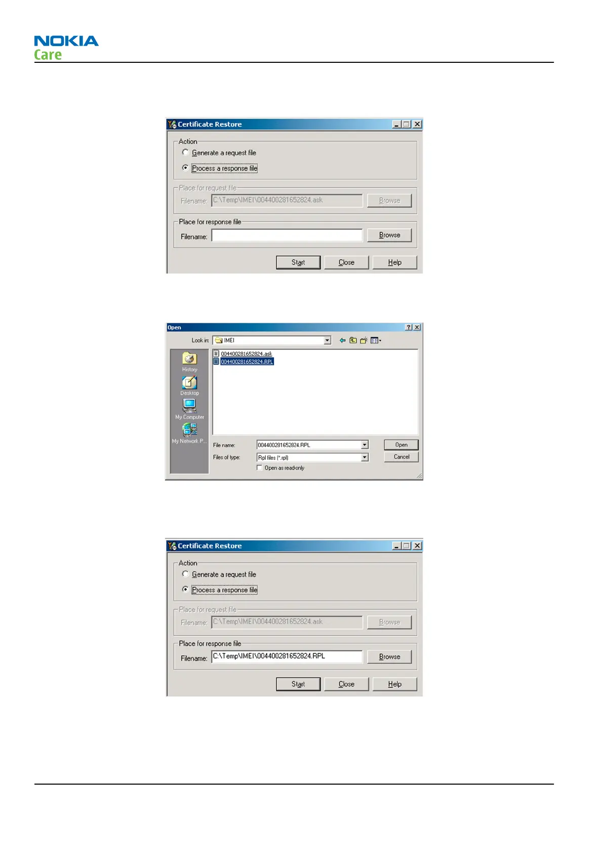iv From the Tools menu, choose Certificate Restore and select Process a response file in the