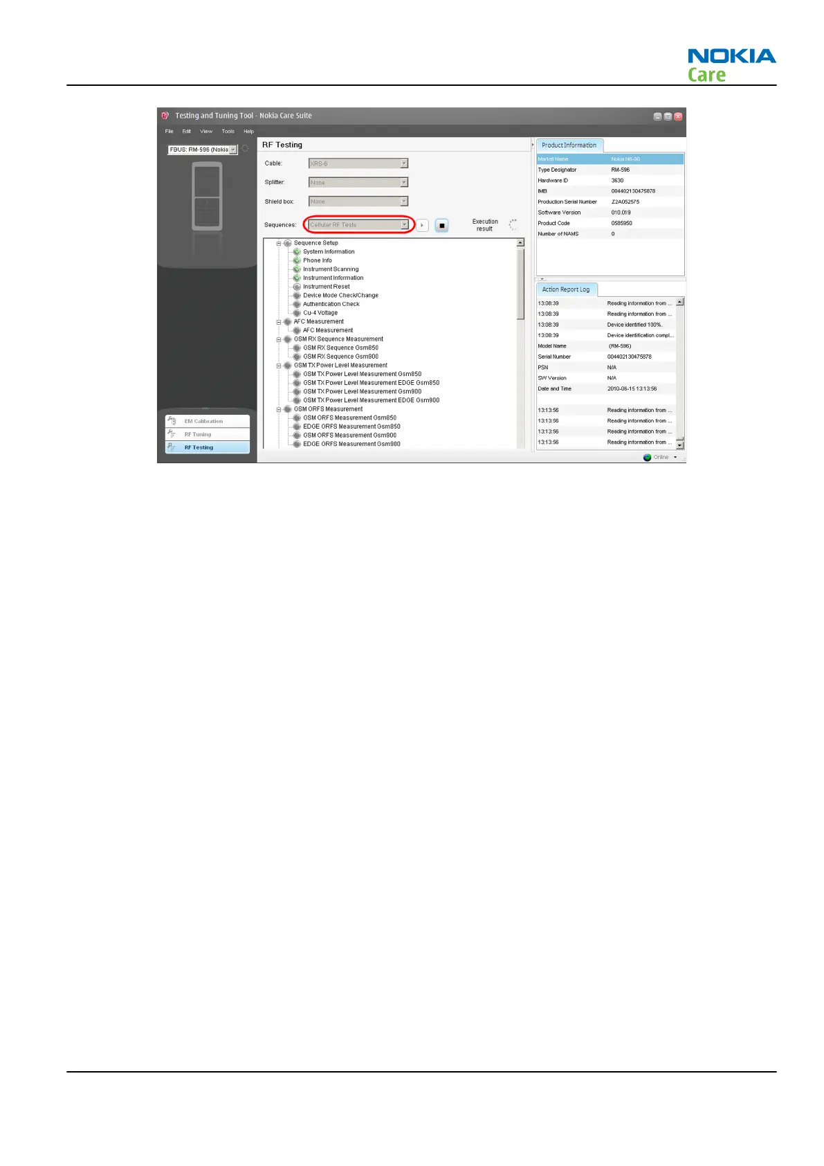 RF Testing selection does all the same measurements as RF Tuning , but does not perform any tunings.