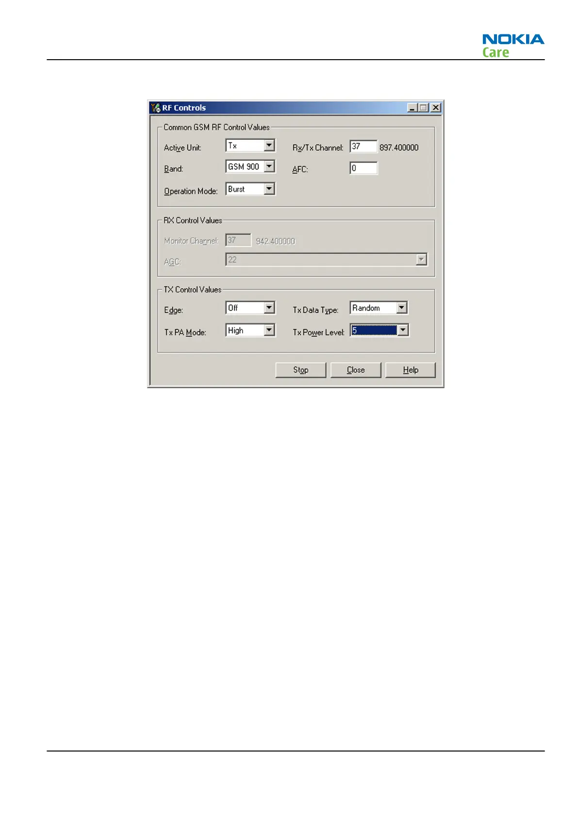 4. GSM transmitter is activated when Active Unit is set to “Tx”. Aura (N7509) supply voltages are on for