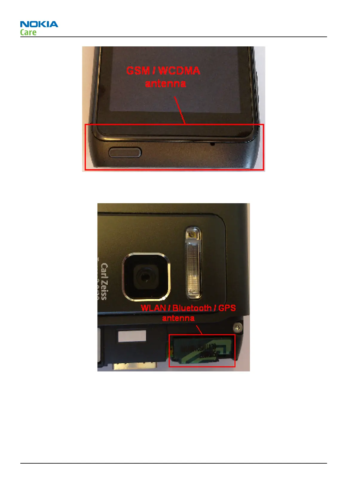 GPS, BT and WLAN RF interfaces are connected to one common antenna. RF feed from the phone PWB to the