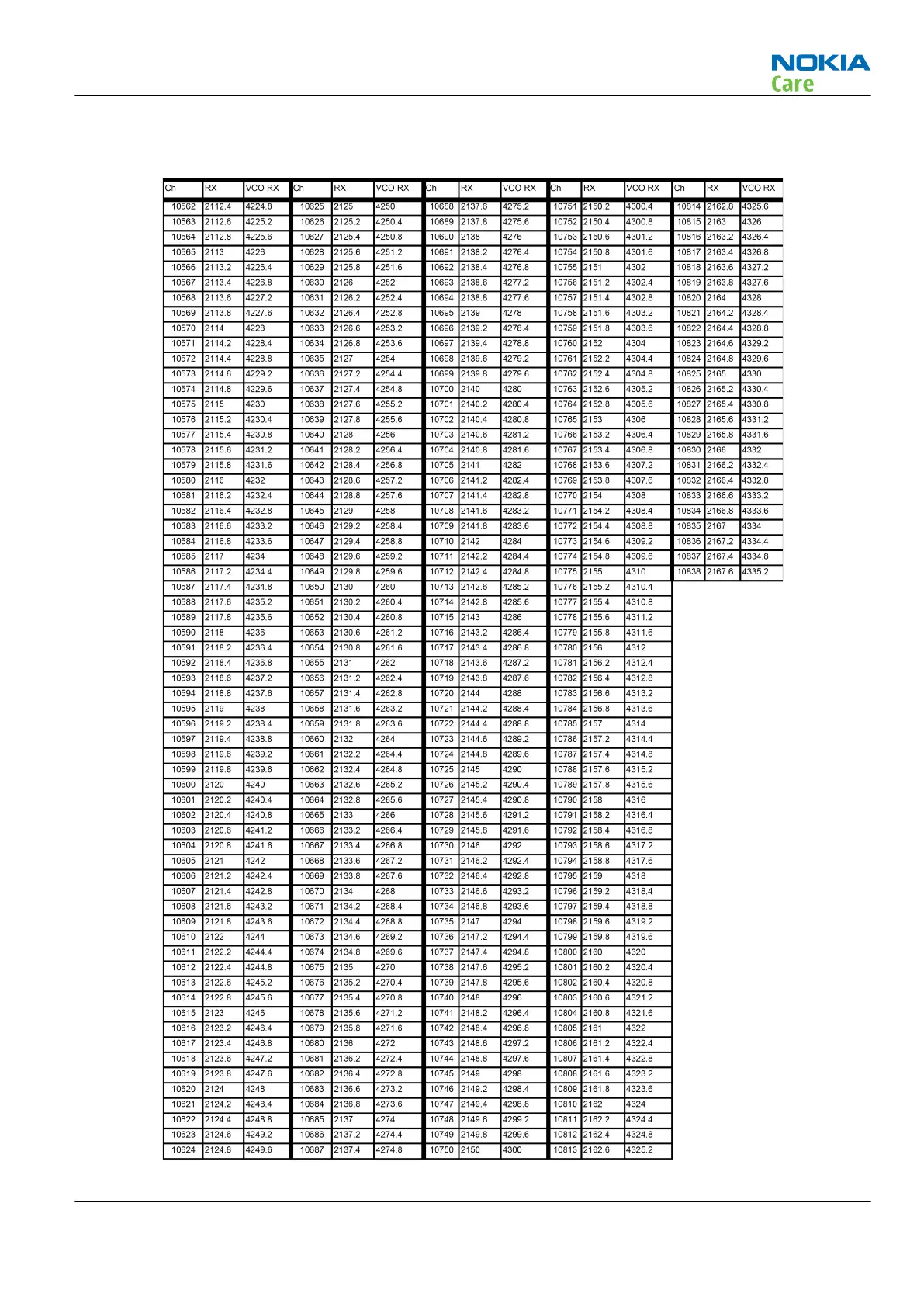 Nokia RM-596 - WCDMA I (2100) Rx Frequencies