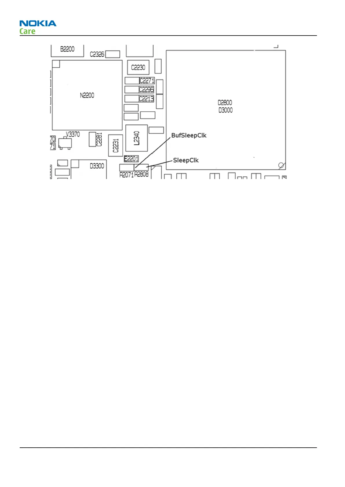 Figure 6 BufSleepClk and SleepClk signals on R2808 pads. The resistor is not assembled.