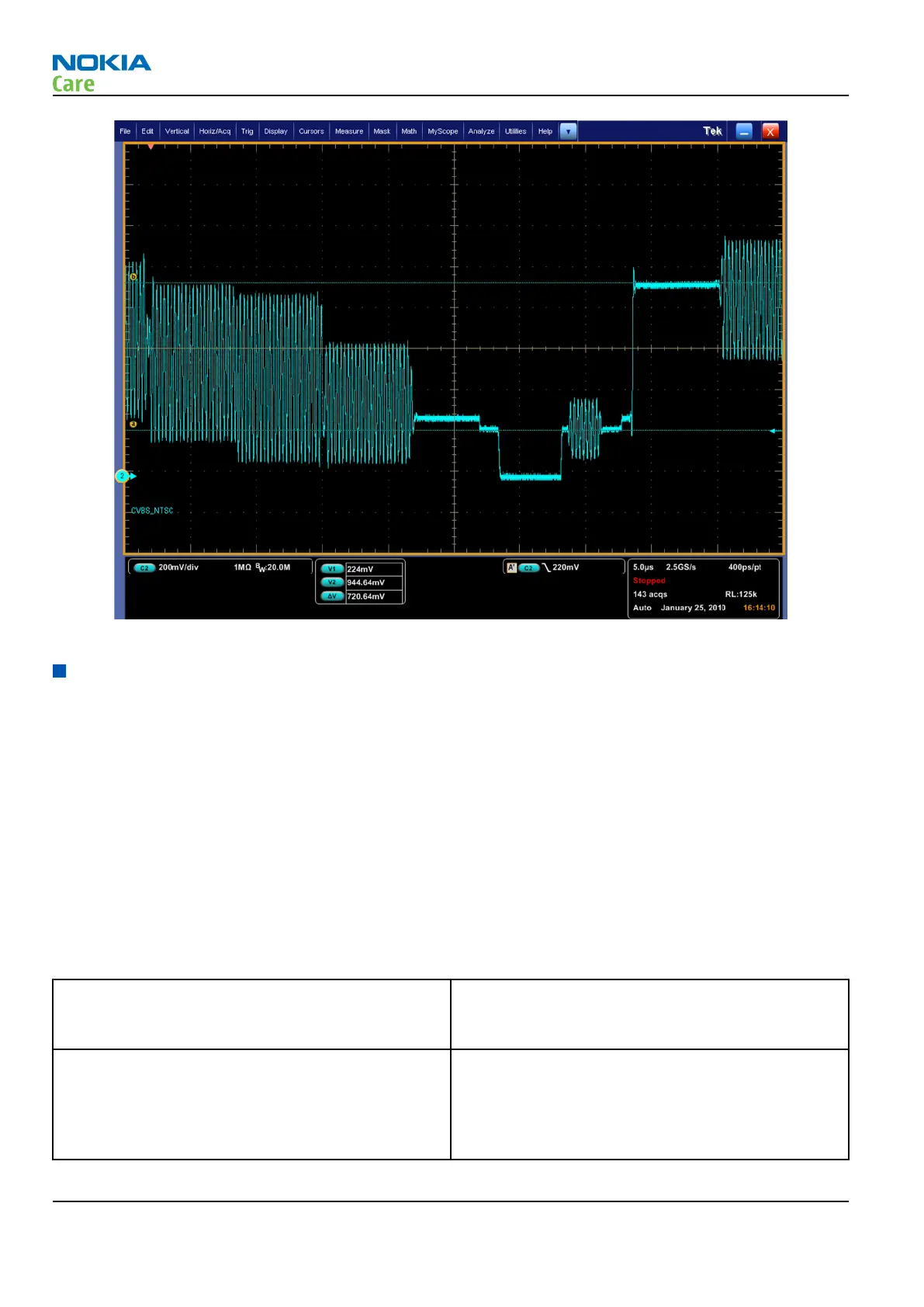 Figure 9 Expected SDTV CVBS NTSC signal on Oscilloscope
