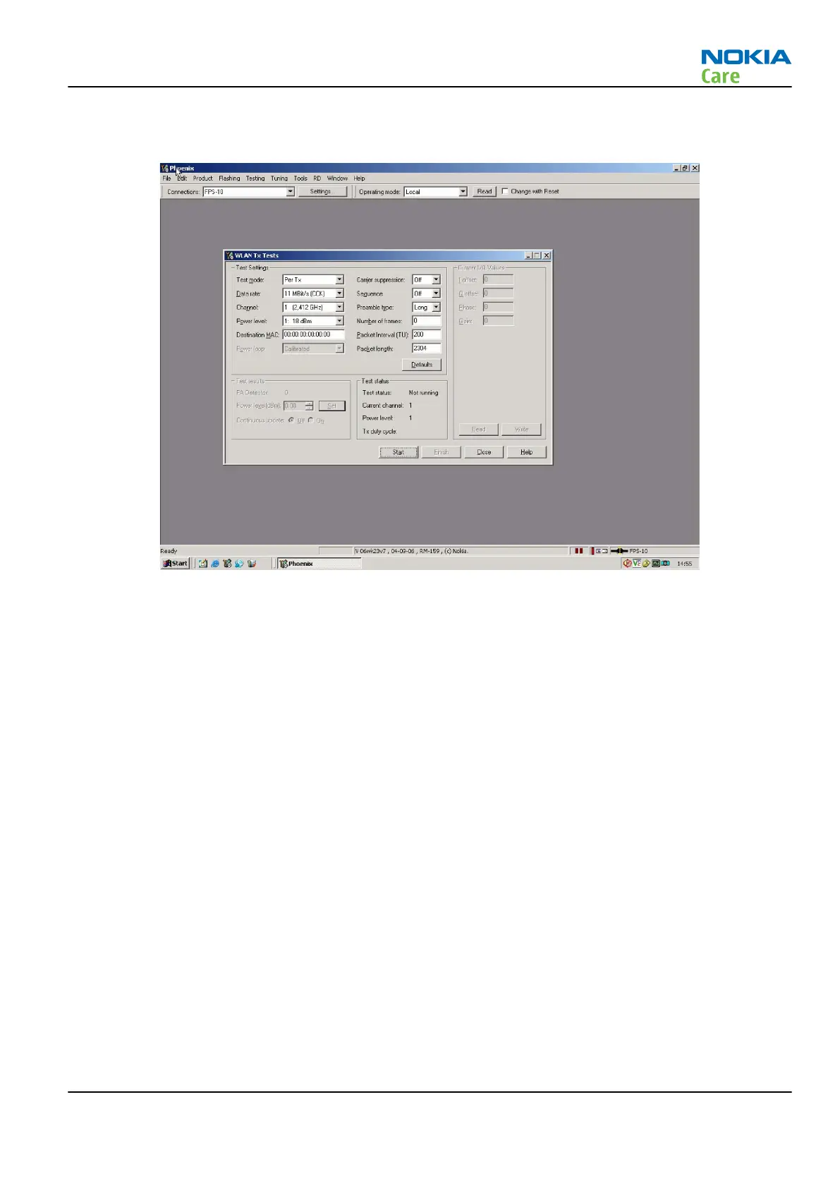 From the testing toolbar select WLAN Rx Test option shown below. This test can be used to verify Rx