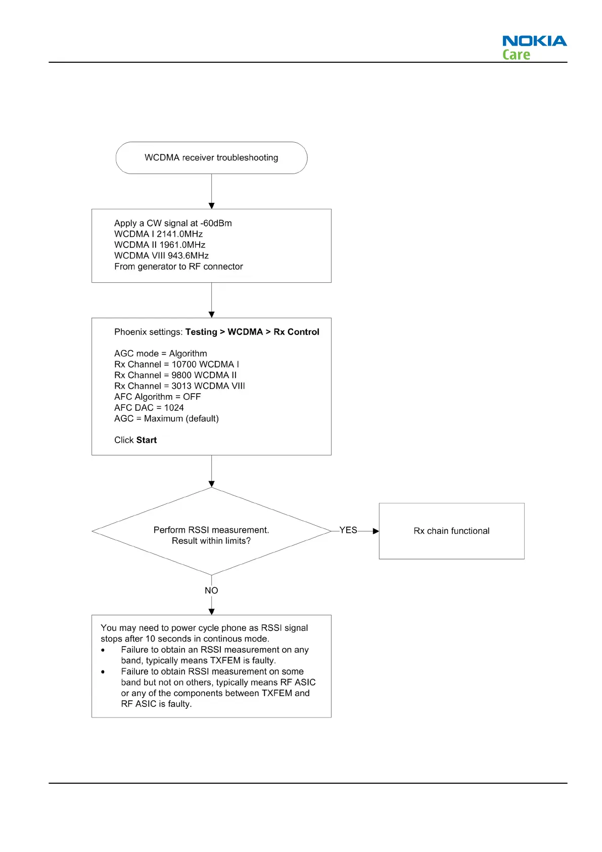 Nokia RM-632 - WCDMA Receiver Troubleshooting Flowchart