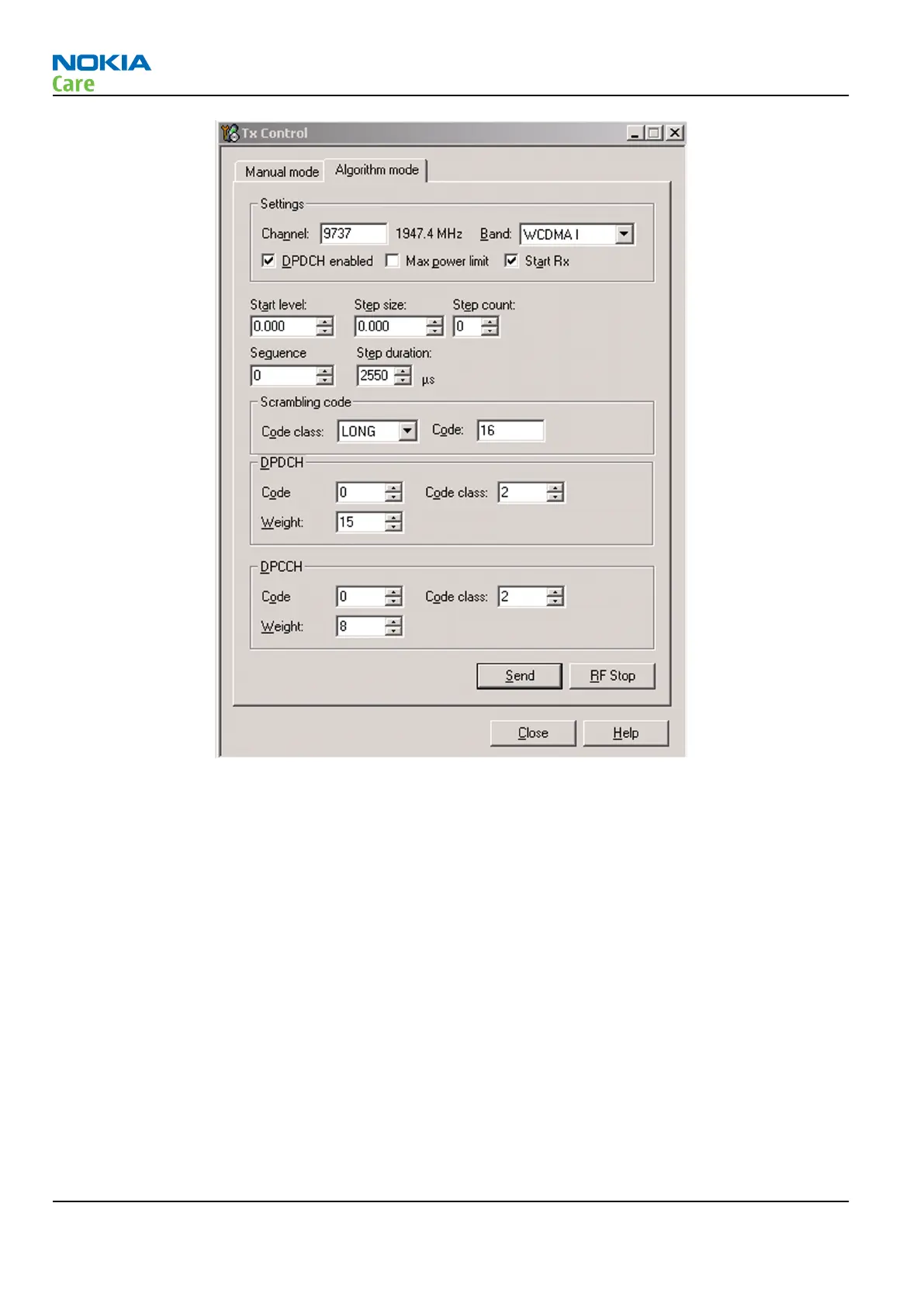 Figure 24 Phoenix WCDMA Tx Control window settings