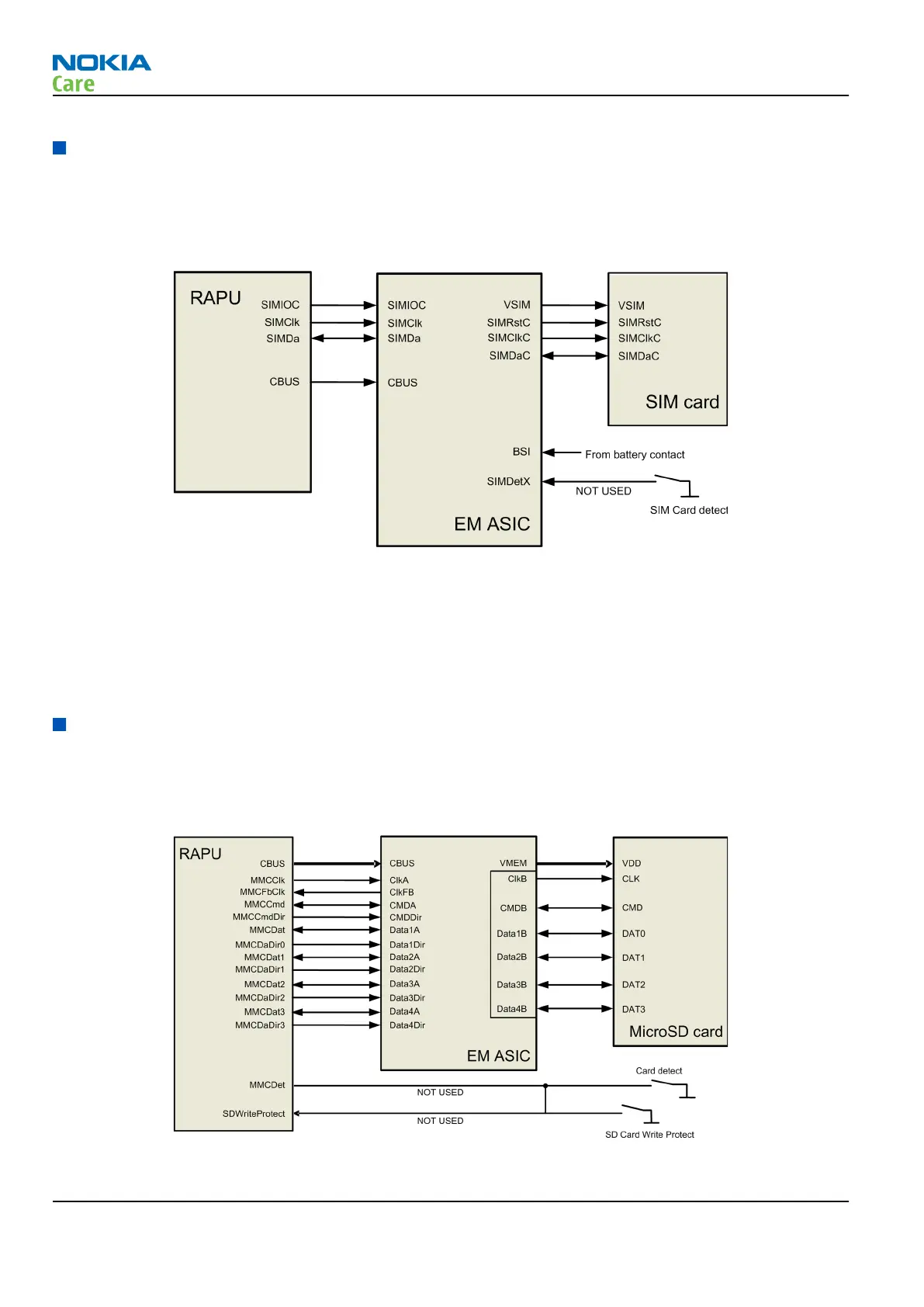 The SIM interface consists of an internal interface between RAPU and EM ASIC (N2200), and an external