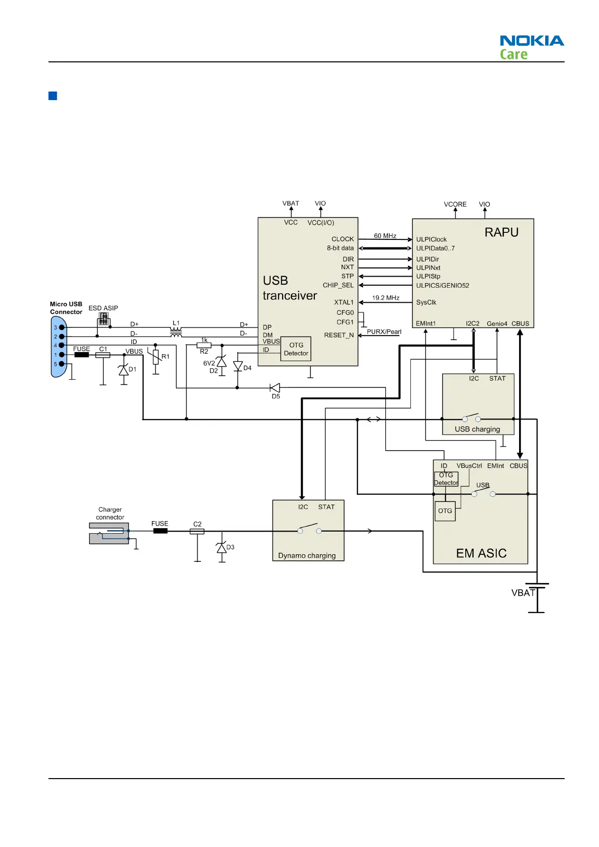The phone has an interface for USB (Universal Serial Bus). USB is a differential serial bus that provides a wired