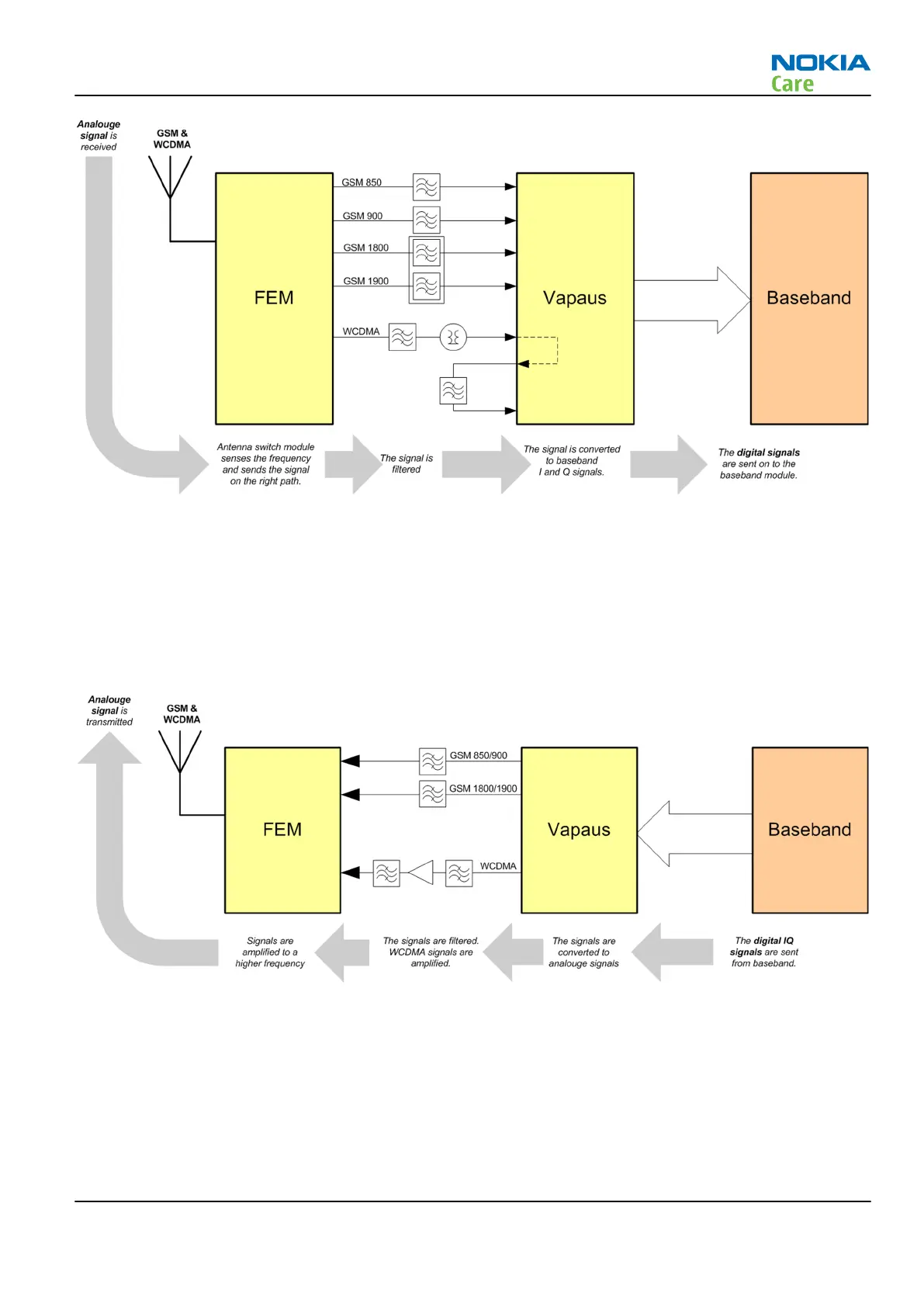 Even though the GSM and WCDMA signals are sent via different components, the principle of the transmission