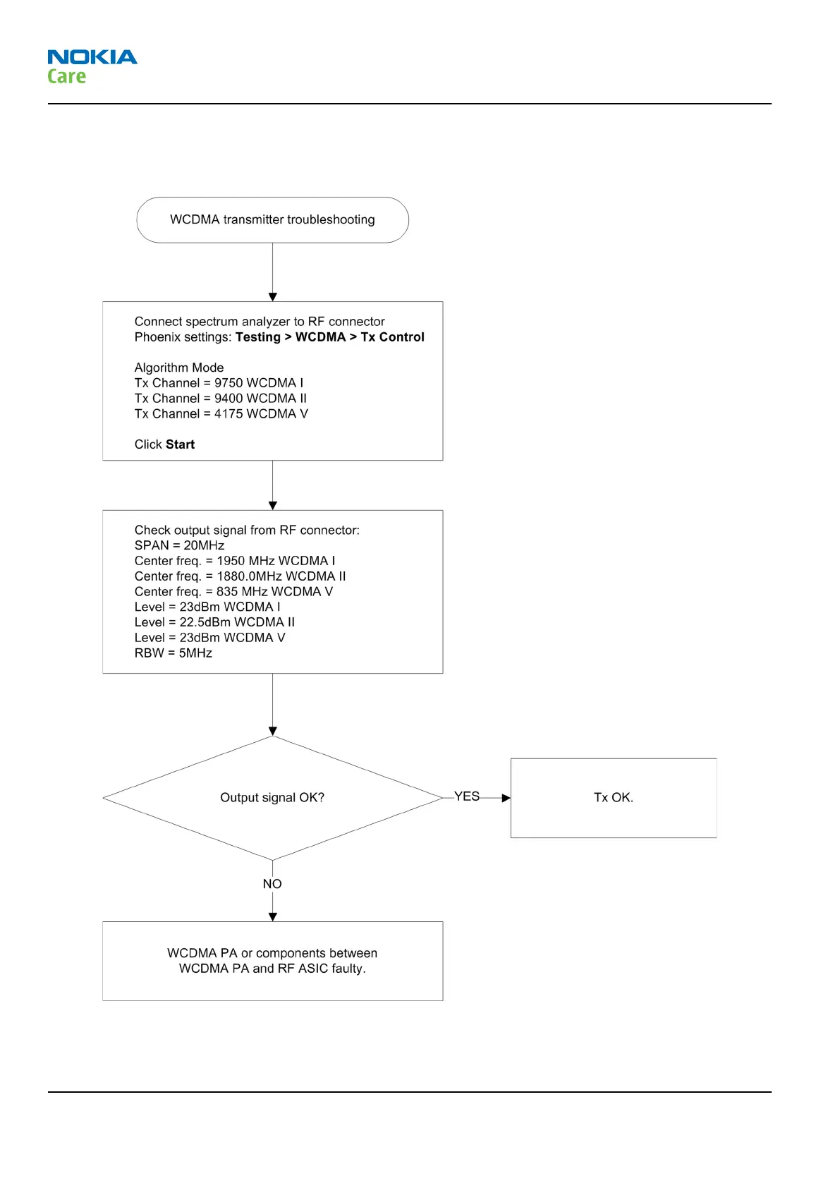Nokia RM-632 - WCDMA Transmitter Troubleshooting Flowchart