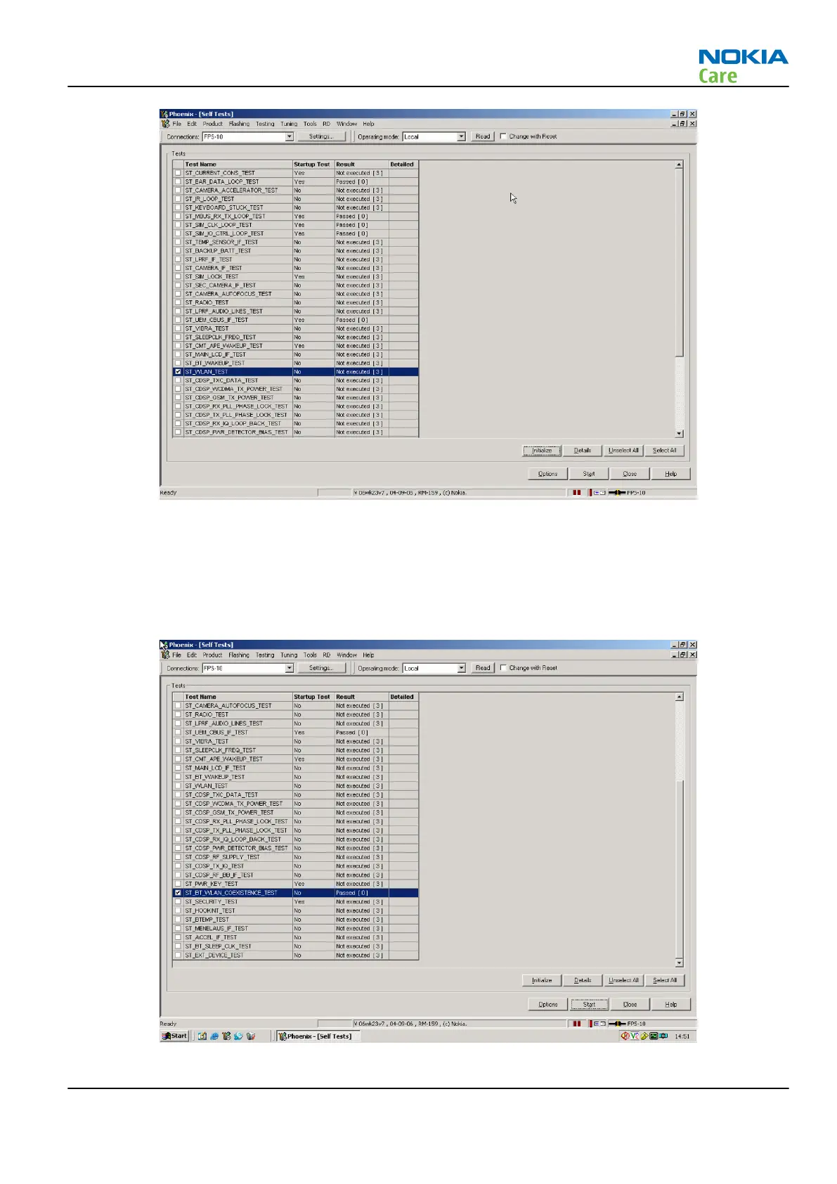 ST_BT_WLAN_COEXISTENCE_TEST check box and selecting Start button.