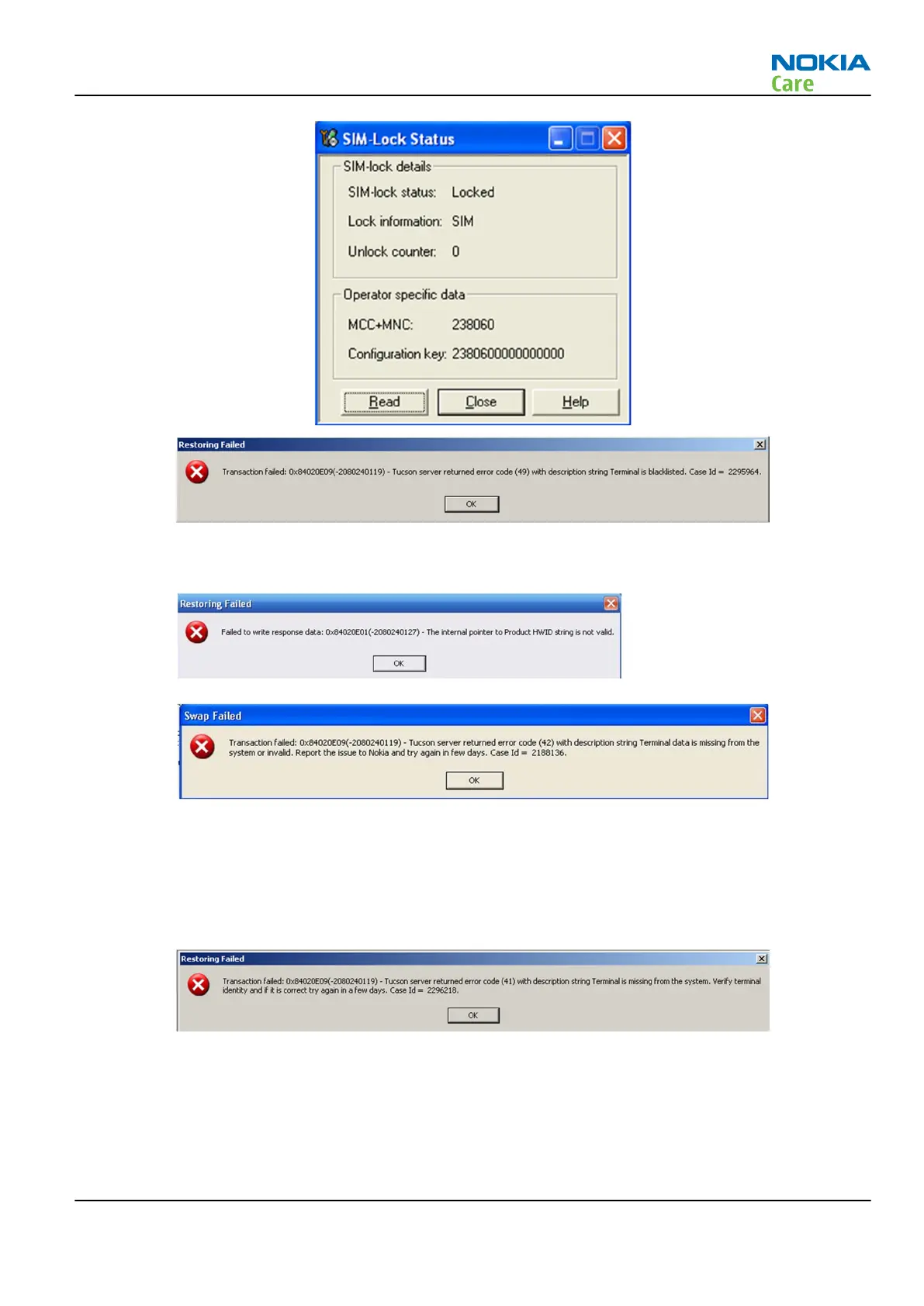 Examples shown above are for missing HW version, other variation of this error can be related to SIM Lock