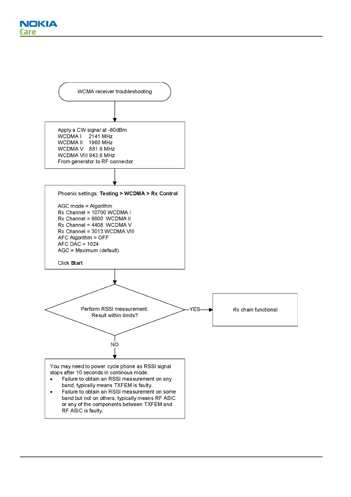 Nokia RM-721 - WCDMA Receiver Troubleshooting Flowchart
