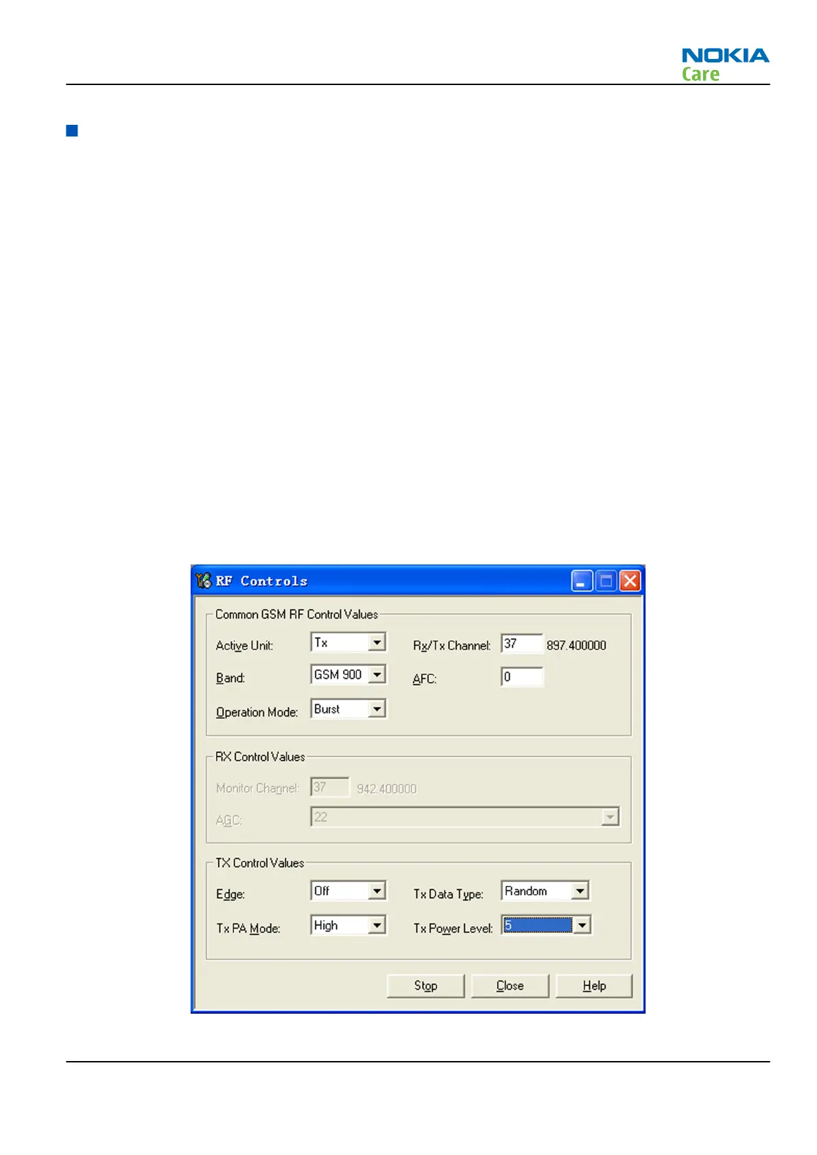 2. In Phoenix, select Testing → GSM → Rf Controls . The RF Controls window opens.