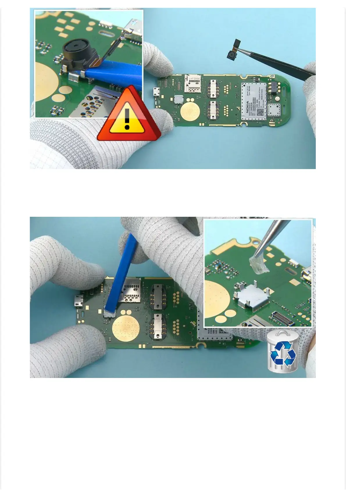 32) Use the SS-93 to remove the CAMERA adhesive remains from the camera socket. Do not use the