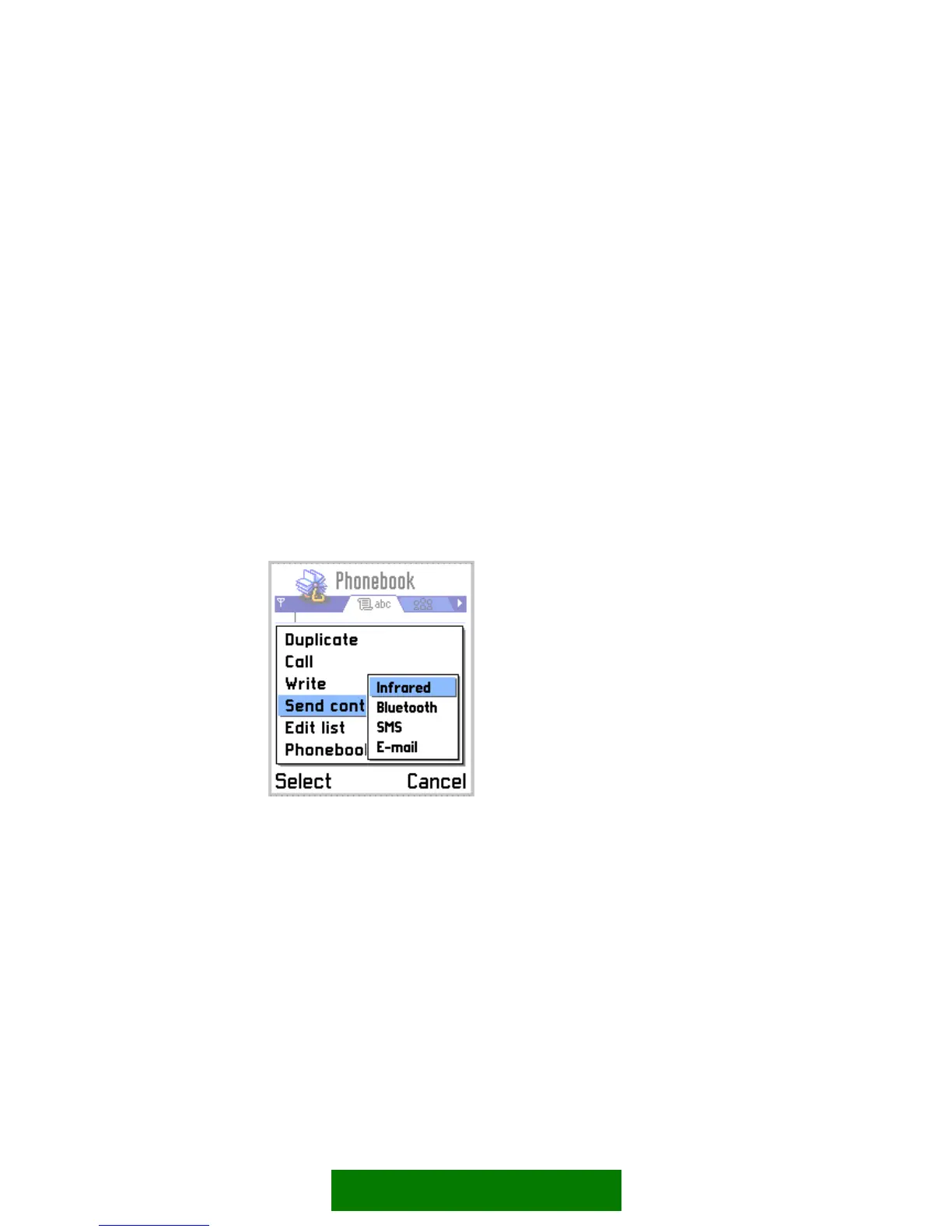 The submenu is opened by pressing either the Left softkey (Select), Select key or
