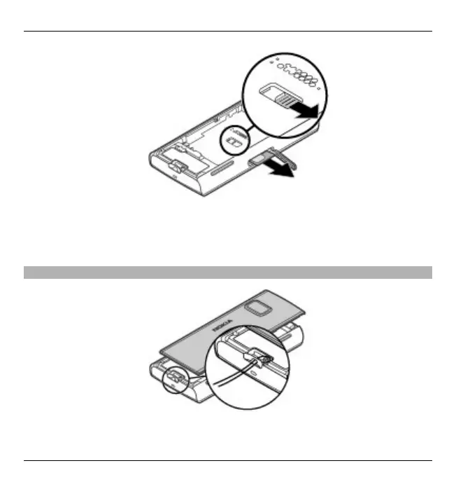 3 Open the cover of the SIM card slot. In the opening under the battery, push the