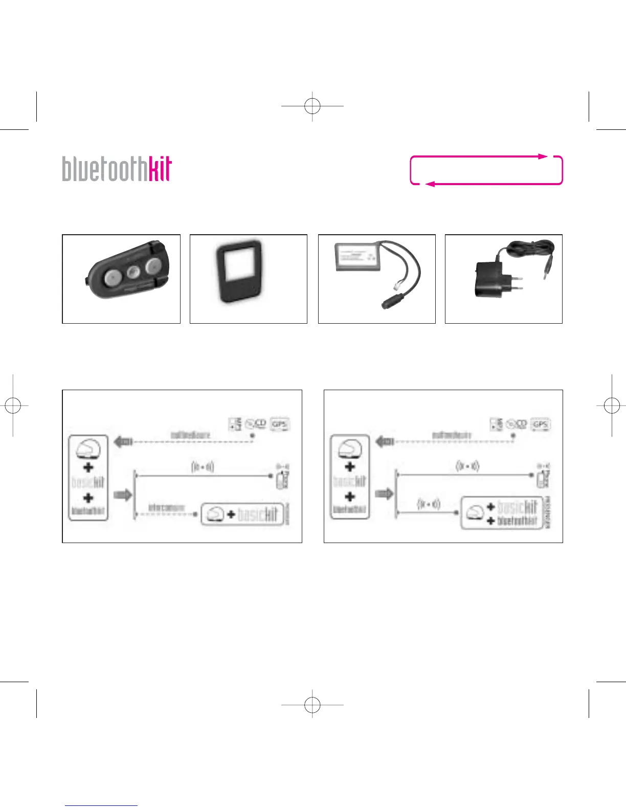 In de verpakking van de N-Com Bluetooth kit vindt men: