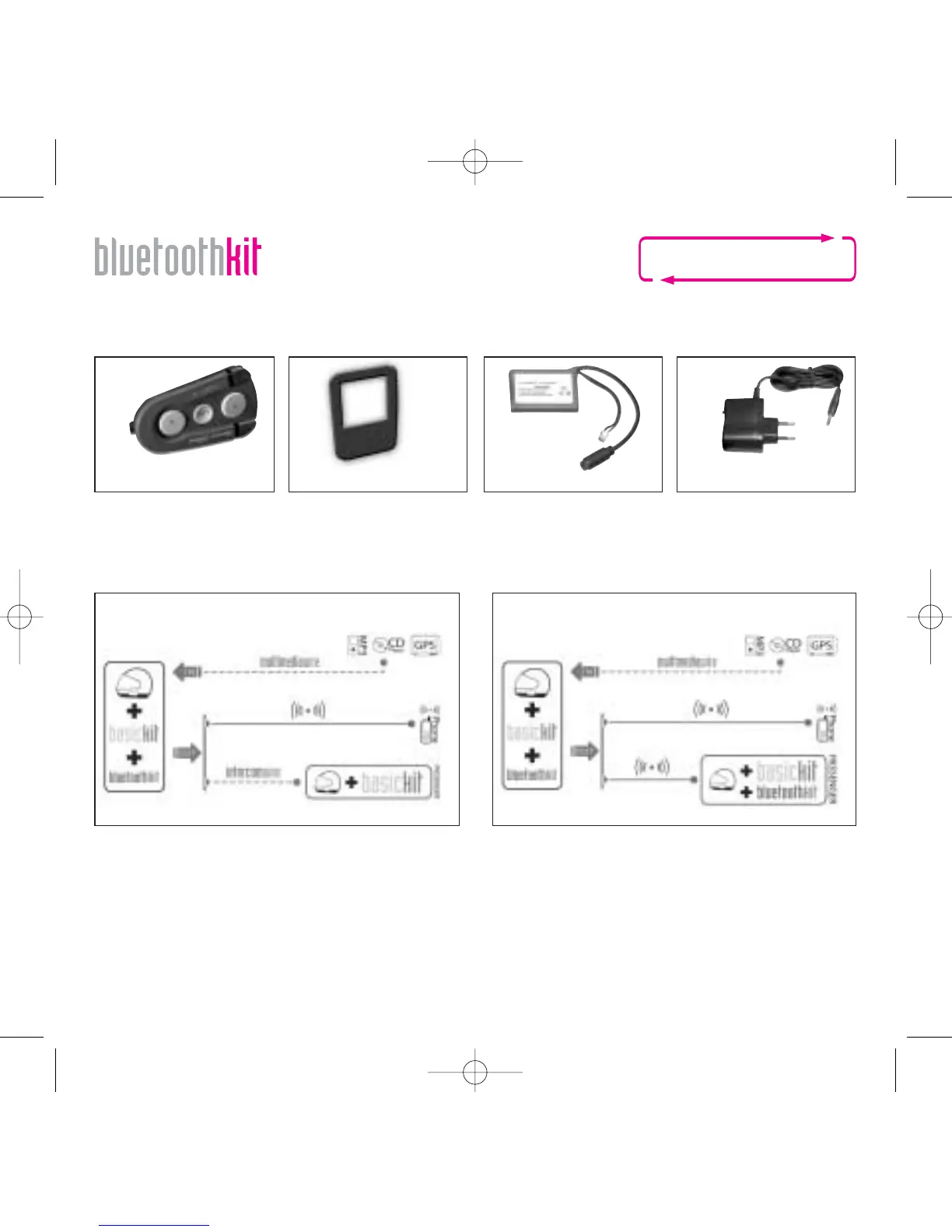 Na embalagem do sistema N-Com Bluetooth kit encontram-se os seguintes itens: