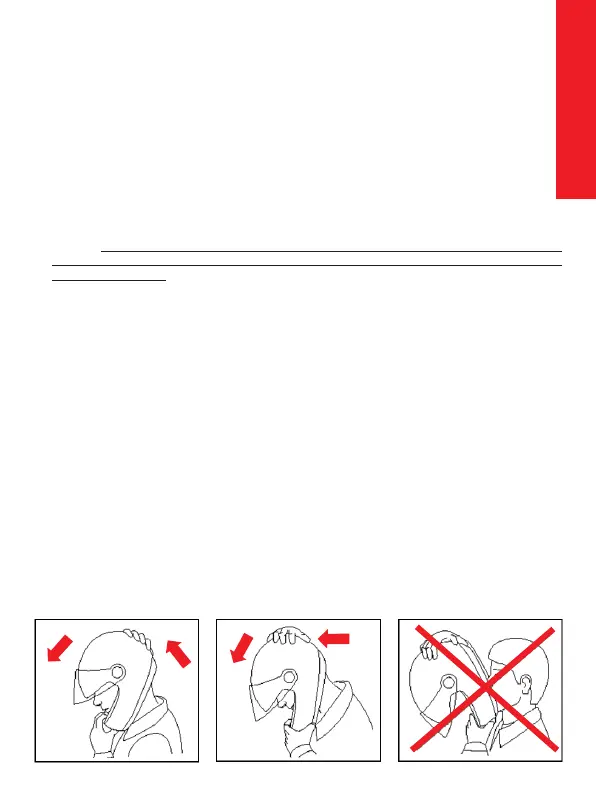 - De helm mag niet draaien, vrij over het hoofd bewegen of afgaan. Indien dit wel het