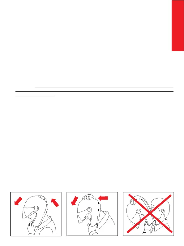 - Versuchen Sie den aufgesetzten und festgeschnallten Helm wie in der Abbildung