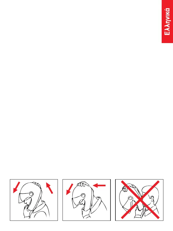 αφαίρεση του κράνους από το κεφάλι εάν αυτό δεν έχει προσδεθεί τέλεια.