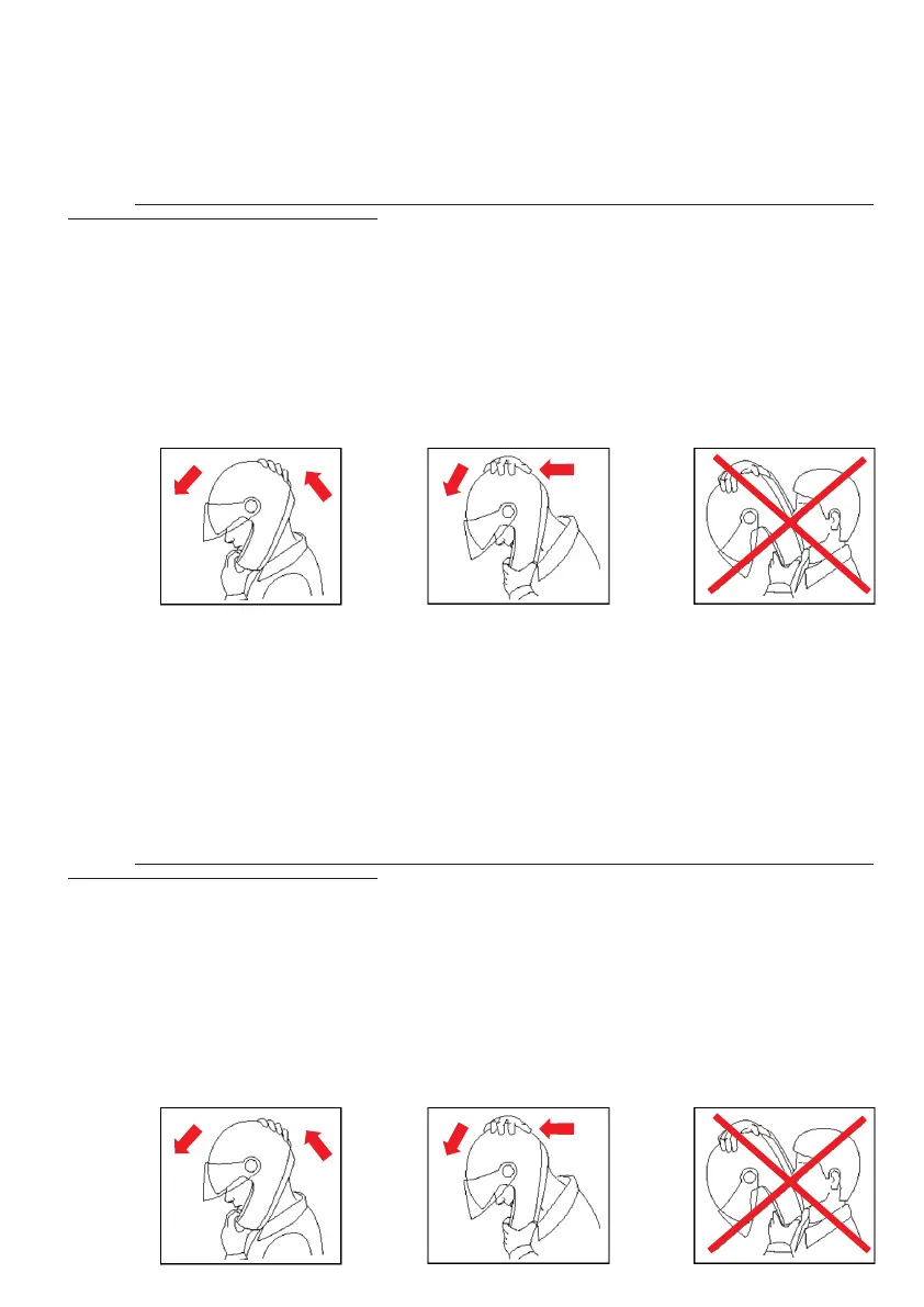 - asegúrate de que la correa siempre sea enganchada y fijada de modo que le casco se quede ceñido a la cabeza. En todo caso,