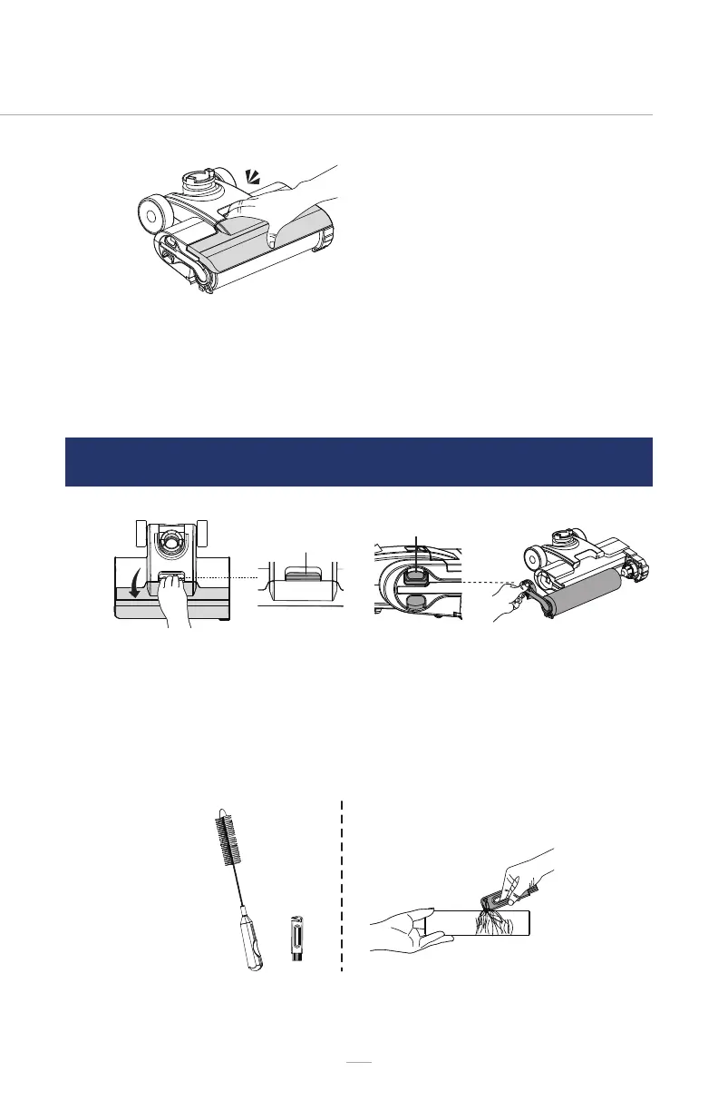 around the roller. After use, put the brush roller cleaning tool back onto the handle.