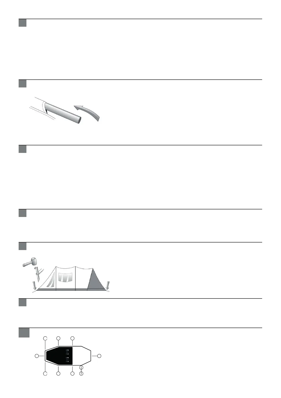 EN Pull the tent taut by securing it in the middle with pegs. Next,
