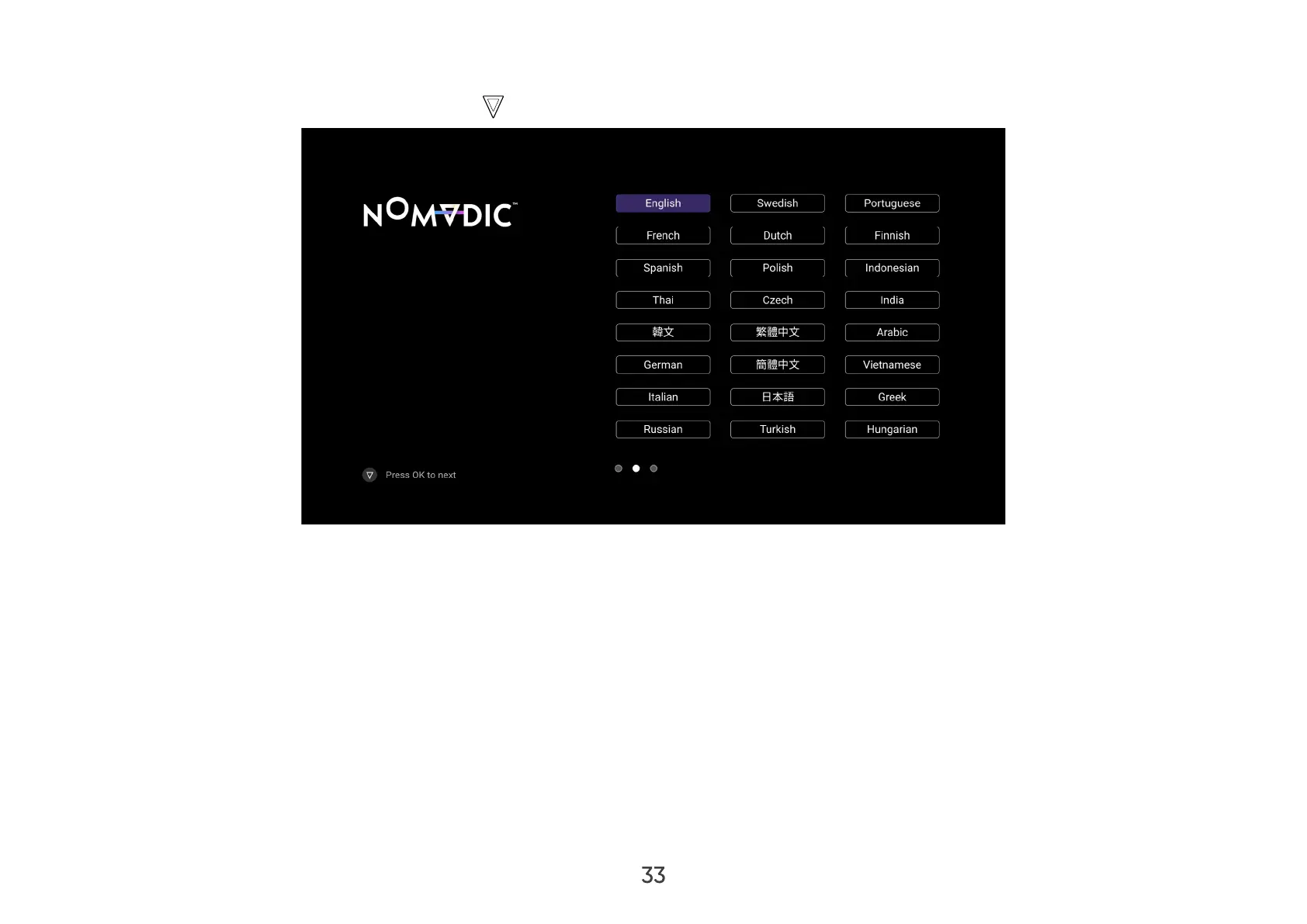 Select the desired language and press OK ( ) on the remote control to confirm the selection.