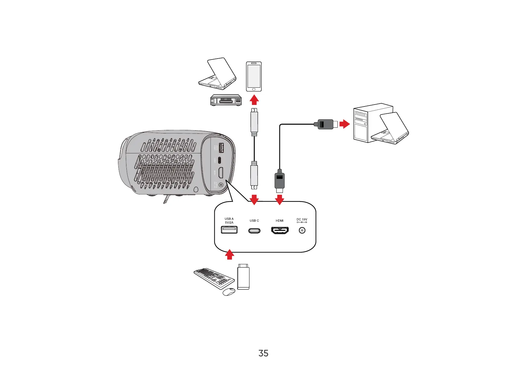 The projector can be connected to multiple devices at the same time. However, it can only display one source at a time.