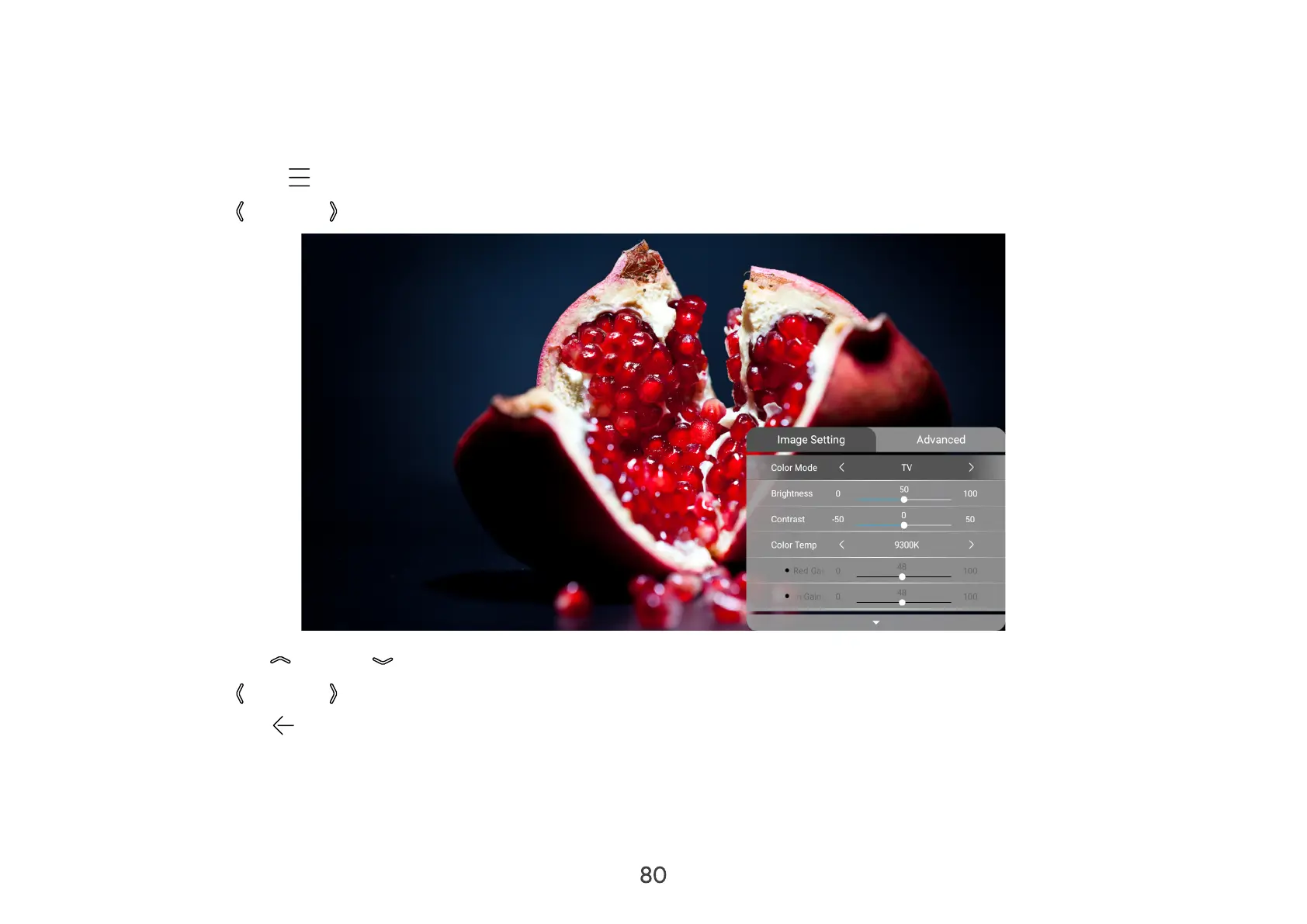 3. Then use the Up ( )/Down ( ) buttons on the remote control to select the sub-menu(s).
