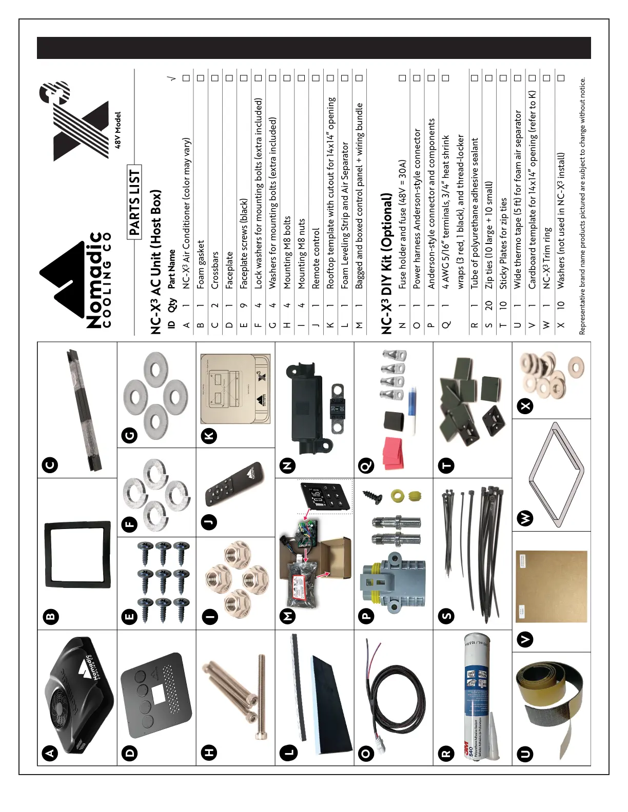 Nomadic NC-X3 - Itemized Parts List (48 V)