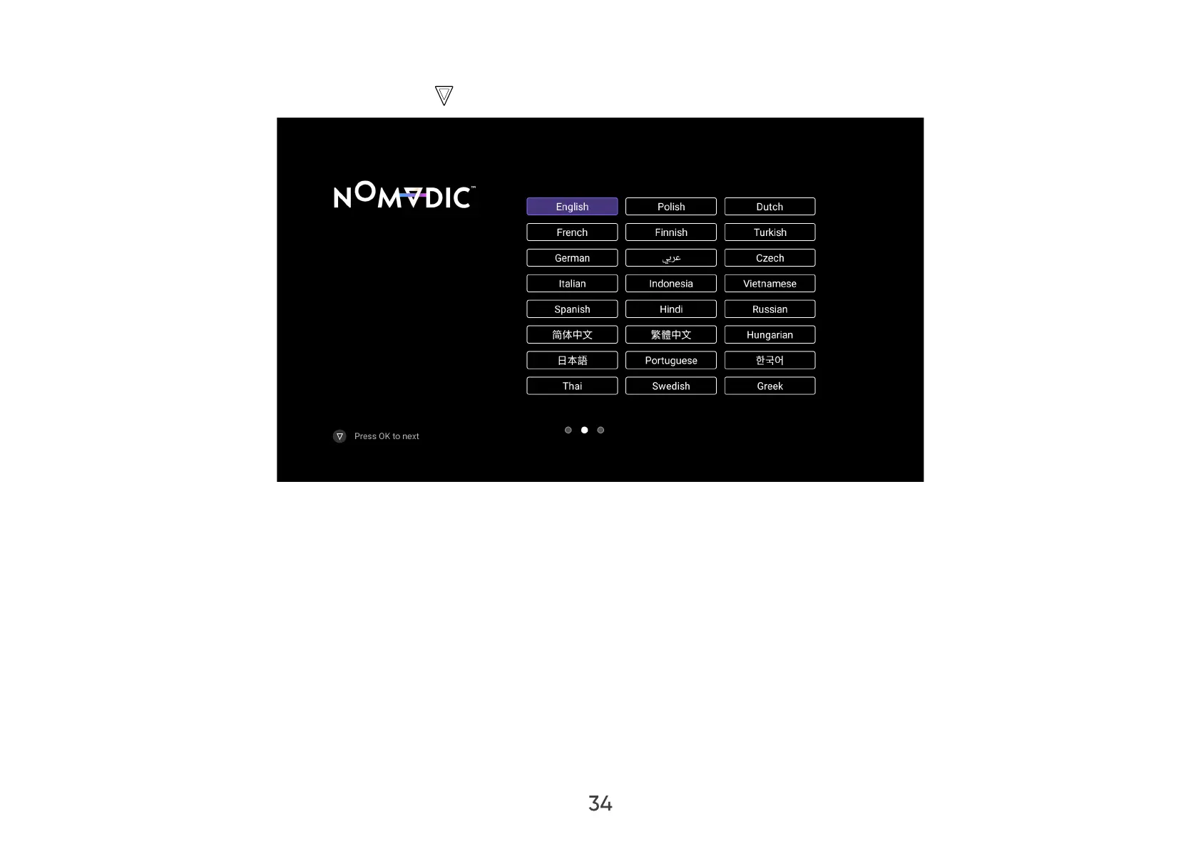 Select the desired language and press OK on the remote control to conrm the selection.