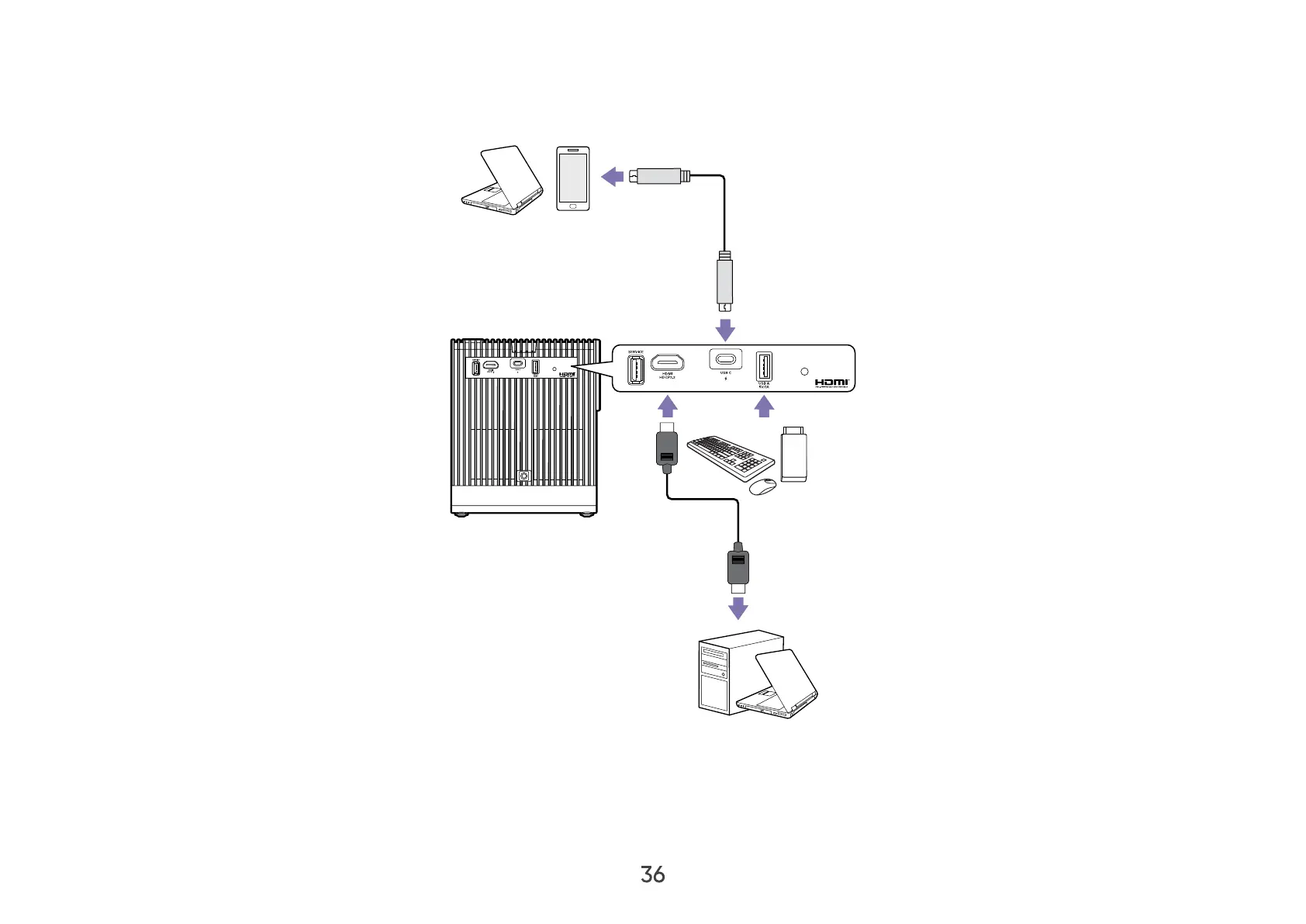 The projector can be connected to multiple devices at the same time. However, it can only display one source at a time.