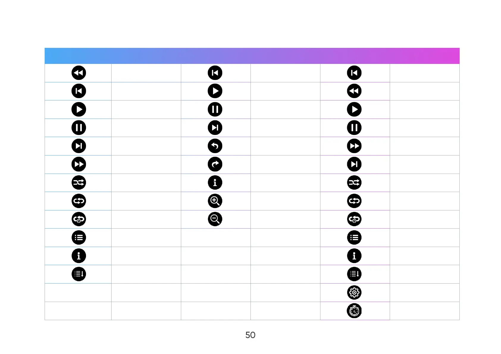 The control bar buttons will appear on screen if a video, music, or photo le is opened.