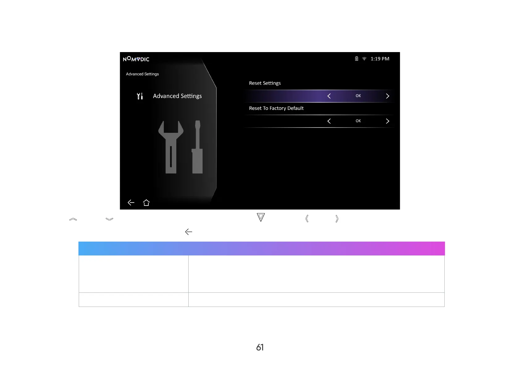 2. Use Up / Down to select the desired option and press OK , or use Left / Right to make adjustments or selections.
