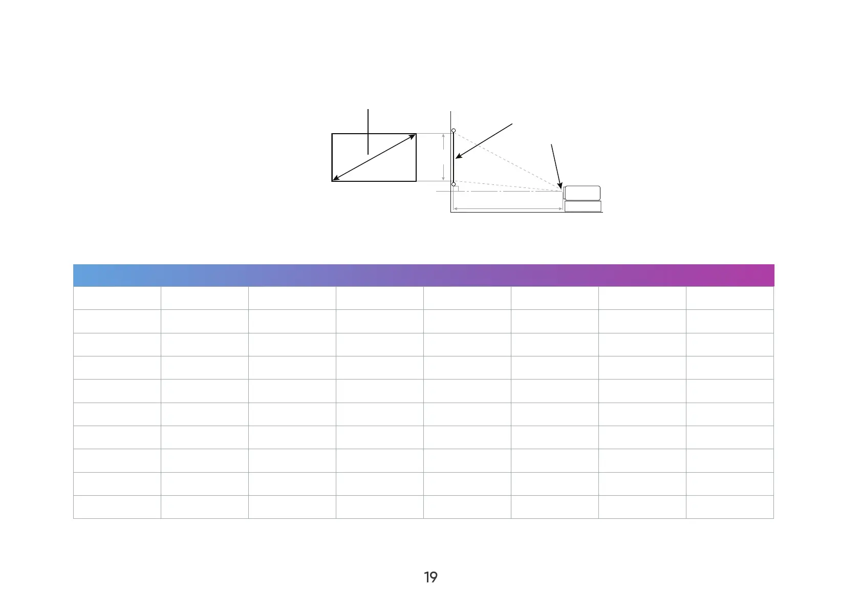 (a) Screen Size (b) Projection Distance (c) Image Height Image Width