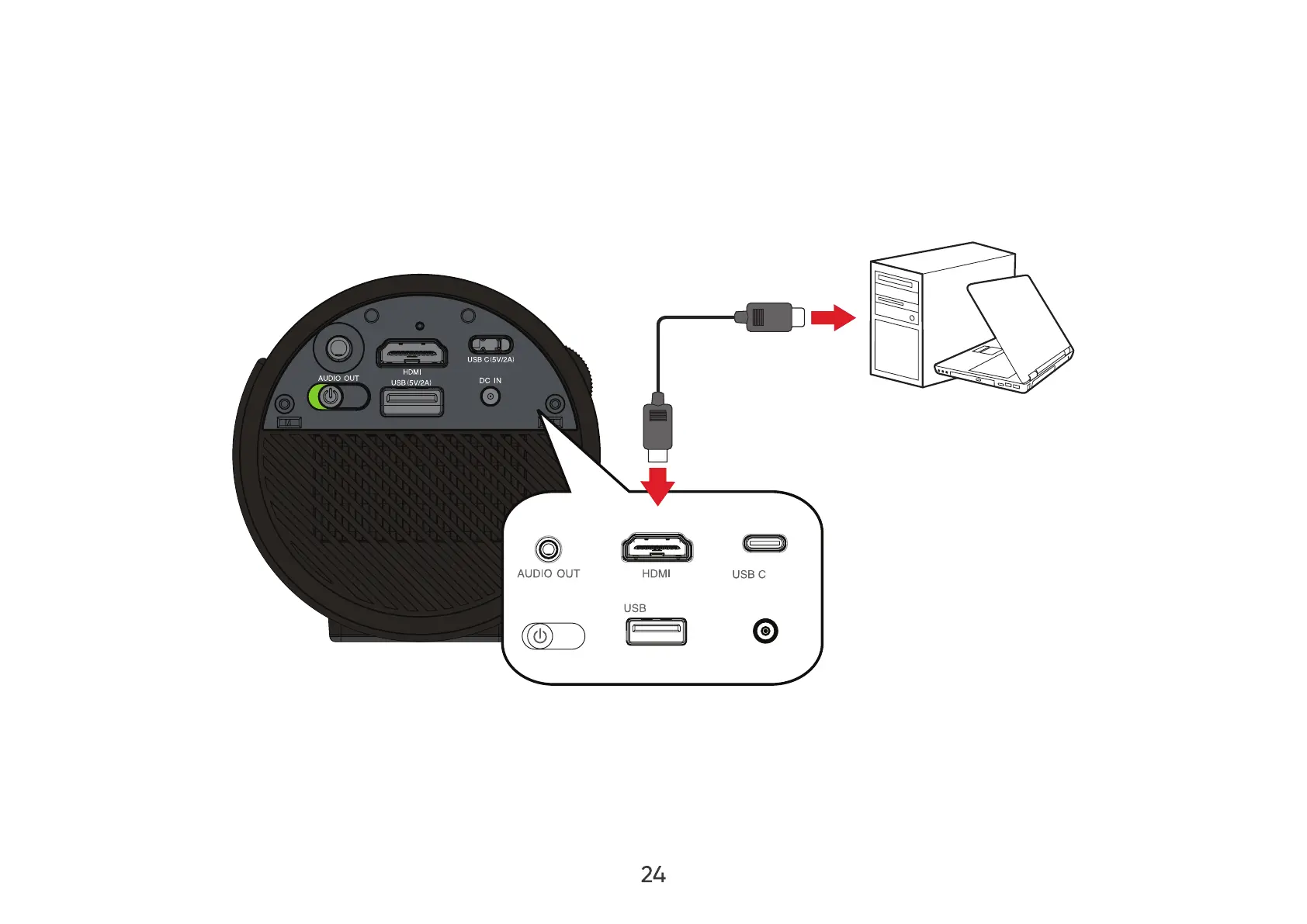 Connect one end of an HDMI cable to the HDMI port of your video device. Then connect the other end of the cable to the
