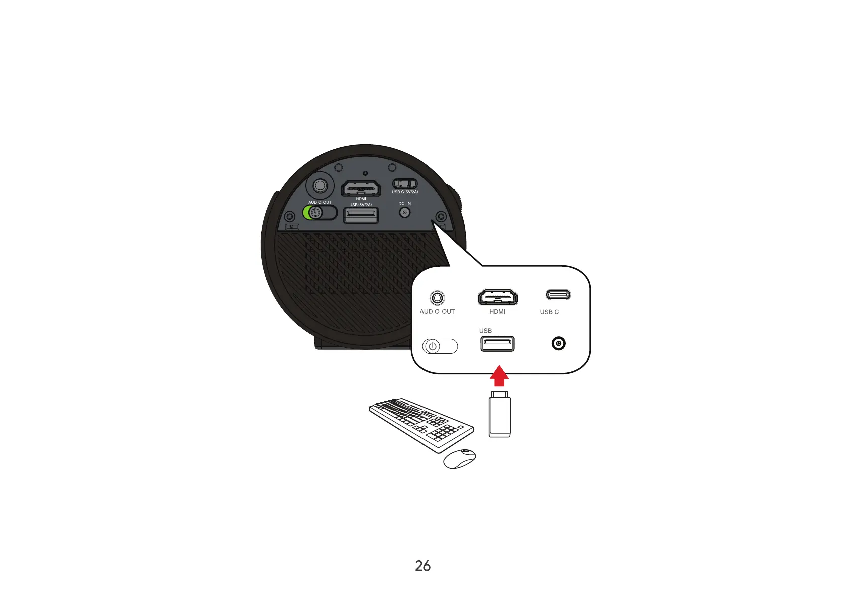 the cable to the USB A port of your projector.