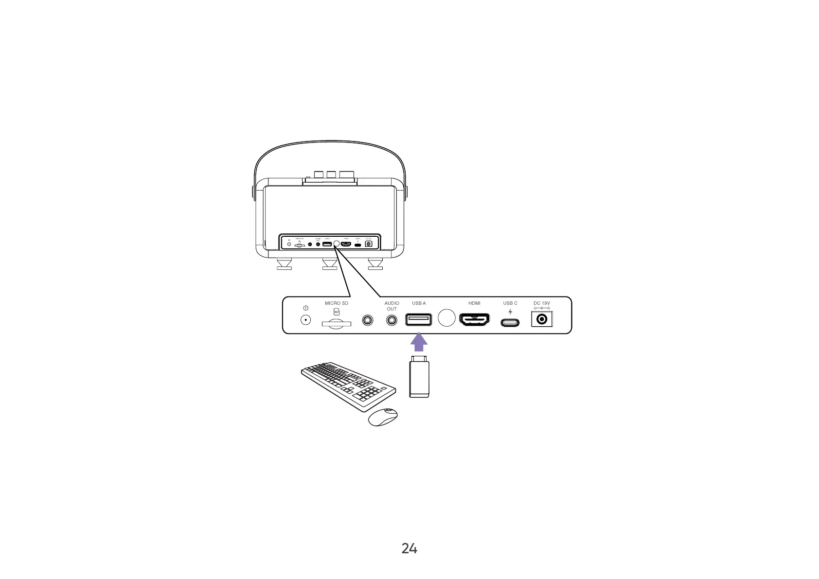 Additionally, you can connect a keyboard, a mouse, dongles, storage devices, etc. to the projectors USB A port.