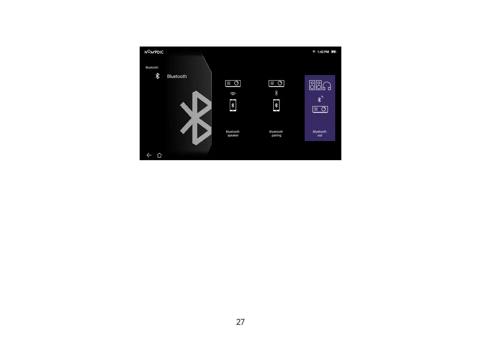 NOTE: Bluetooth Out cannot work with Bluetooth Speaker or Bluetooth Pairing at the same time.