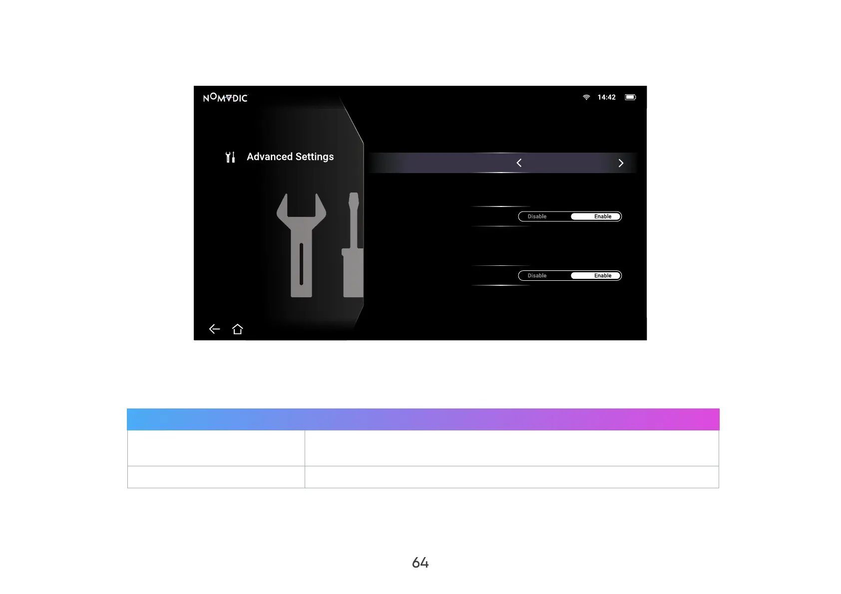 2. Use the Up and Down buttons to select the desired option and press OK, or use the Left and Right buttons to make