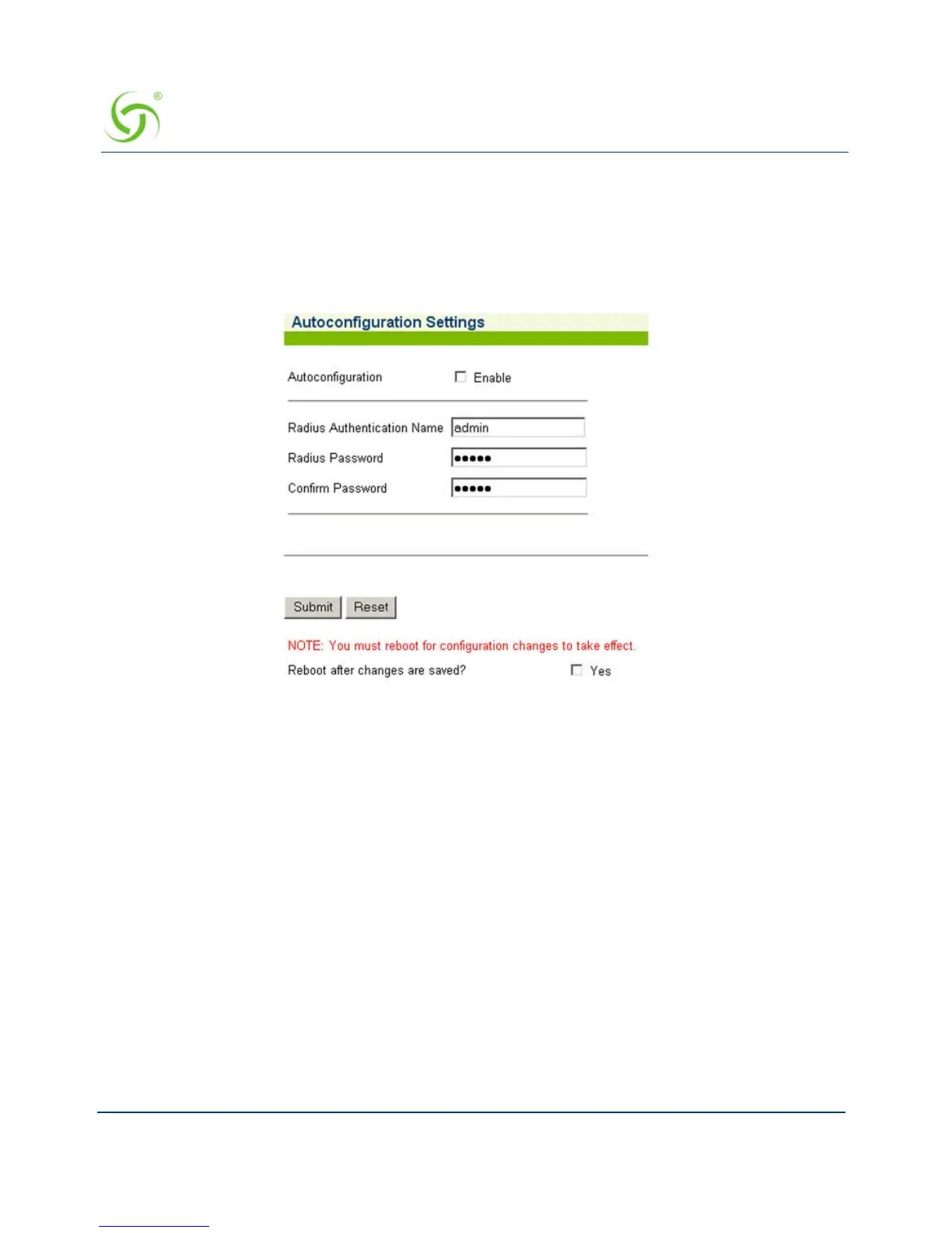 5. Click on the Submit button to save your changes, or click or the Reset button to reset all
