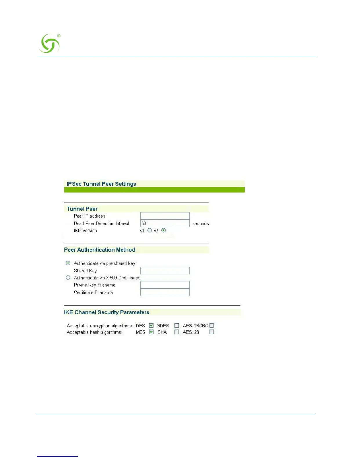 5. In the Peer Authentication Method section, select one of the two peer authentication